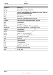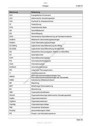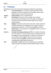 Offen Anlagen A-500/15 5 Anlagen 5.1 Abkürzungsverzeichnis 38 5.2 Geschäftsvermerke und Farbmarkierungen 41 5.3 Verfügungen 42 5.4 Aufbewahrungsfristen 43 5.5 Vorgaben zur Vorlagenerstellung 44 5.6 Standards und Kriterien zur Aktenführung 46 5.7 Rollen und Berechtigungen st ! 49 en 5.8 Bezugsjournal sd i 51 ng 5.9 Änderungsjournal ru 53 de Än m de ht ic tn eg rli te un k uc dr us rA se ie D Seite 37 Stand: Juli 2021