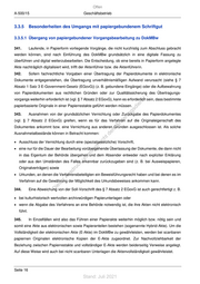 Offen Geschäftsbetrieb A-500/15 3.3.5.2 Laufmappen 346. Für die Weiterleitung von Vorgängen sind Laufmappen zu verwenden: Grundsätzlich gilt für die Verwendung der verschiedenen Laufmappen: gelb mit Aufdruck „Sofort“ Sofortsachen (sofort = unverzüglich) gelb Eilsachen (eilt = vor den übrigen) rot, verschließbar und nicht verschließbar mit VS mit einem Geheimhaltungsgrad höher als oder ohne besondere VS-Kennzeichnung VS - NUR FÜR DEN DIENSTGEBRAUCH grün, verschließbar Personalangelegenheiten, personenbezogene Daten ! orange st Zeitschriften und Zeitungen en sd i rot/gelb diagonal gestreift Fernschreiben, Telegramme und Schnellbriefe ng ru grau alle übrigen GV de Än Verschließbare Laufmappen sind mit Verschlussstreifen zu verschließen, sofern sie nicht von Hand m zu Hand weitergegeben werden. de ht Schnellbriefe, Telefaxe, Eingänge aus dem Military Message Handling System sowie mittels E-Mail ic 18 tn übersandte Eilvorgänge sind sofort weiterzuleiten. eg rli te Der geplante Laufweg der Mappen ist auf den Außenseiten in den vorgesehenen Feldern zu ver- un merken. k uc dr us 3.3.6 rA Behandlung von Geschäftsvorfällen se ie 347. Der GV ist die kleinste Bearbeitungseinheit in der Aufgabenwahrnehmung der DSt. Für die D Bearbeitung eines konkreten GV ist grundsätzlich eine federführende Stelle (FFSt) zu benennen. Die Bearbeitung selbst erfolgt in einem „Vorgang“, der als zentrale Ablage für das in Bearbeitung des GV angefallene Schriftgut dient. Die Bearbeitung erfolgt grundsätzlich elektronisch; einzelfallbezogen ist auch eine mündliche Bearbeitung zulässig. Soweit die GV-Bearbeitung mündlich erfolgt, ist sie 19 grundsätzlich schriftlich zu dokumentieren (Aktenvermerk, Aktennotiz). 348. Soweit der GV von erheblicher Relevanz für eine andere Stelle erscheint, soll diese nachrichtlich beteiligt werden. Dies umfasst die Information über den zu bearbeitenden GV oder 18 Ist eine elektronische Weiterleitung von digital bereitgestellten Eilvorgängen nicht möglich, bzw. nicht gestattet, sind diese unverzüglich zu drucken und in Laufmappen weiterzuleiten. 19 Eine nachträgliche schriftliche Dokumentation kann bei nicht aktenrelevanten und bereits erledigten Vorgängen entbehrlich sein. Seite 17 Stand: Juli 2021