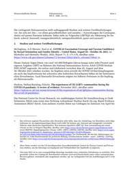 Wissenschaftliche Dienste Dokumentation Seite 5 WD 9 - 3000 - 017/22 Die vorliegende Dokumentation stellt auftragsgemäß Studien und weitere Veröffentlichungen vor, die sich mit den – vor allem gesundheitlichen und sozialen – Auswirkungen der Coronapan demie auf queere Personen befassen. Dabei steht im Folgenden LSBTIQA als Abkürzung für les 5 bisch, schwul, bisexuell, transgeschlechtlich, intergeschlechtlich, queer und asexuell. 2. Studien und weitere Veröffentlichungen McNaghten, A.D./Brewer, Noel et al., COVID-19 Vaccination Coverage and Vaccine Confidence by Sexual Orientation and Gender Identity – United States, August 29 – October 30, 2021, in: Morbidity and Mortality Weekly, 2022, Report 71, S. 171-176, abrufbar unter https://www.cdc.gov/mmwr/volumes/71/wr/mm7105a3.htm?s_cid=mm7105a3_w. Dieser Analyse liegen Daten von rund 143.000 Befragten (davon knapp unter zehn Prozent nach eigenen Angaben LSBT) im Rahmen des National Immunization Survey Adult COVID Module 6 (NIS-ACM) zugrunde, die online und telefonisch zwischen dem 29. August und dem 30. Oktober 2021 erhoben wurden. Im Ergebnis seien sowohl die COVID-19-Durchimpfungsrate als auch das Impfvertrauen bei schwulen oder lesbischen Erwachsenen höher als bei heterosexu ellen Erwachsenen. Auch bisexuelle Erwachsene zeigten ein höheres Vertrauen in die Impfung als Heterosexuelle. Hudson, Nathan/Kersting, Felicity, The experiences of UK LGBT+ communities during the COVID-19 pandemic: A review of evidence, November 2021, abrufbar unter https://natcen.ac.uk/our-research/research/the-experiences-of-uk-lgbtplus-communities-during- the-covid-19-pandemic/. Das National Centre for Social Research, ein unabhängiges Institut für Sozialforschung in Groß britannien, führte zum einen eine Sichtung vorhandener Studien durch ein sog. Rapid Evidence 7 Assessment (REA) durch. Zum anderen wurden Daten aus Umfragen im Zeitraum von April bis 5 Das teilweise ergänzte Pluszeichen oder Sternchen steht dafür, dass die Aufzählung von Identitäten nicht abge schlossen ist. Im englischsprachigen Raum wird LGBT für lesbian, gay, bisexual and transgender verwendet. Näheres siehe Deutsches Jugendinstitut, Was bedeutet eigentlich LSBT*Q?, Eine Leseanleitung mit einem Glossar zu den wichtigsten Begriffen, abrufbar unter https://www.dji.de/themen/queere-jugend/glossar.html sowie BMFSFJ, Regenbogenportal, Glossar, LSBT, LSBTI, LSBTIQ, LSBTIQ, abrufbar unter https://www.regen bogenportal.de/glossar?tx_dpnglossary_glossary%5B%40widget_0%5D%5Bcharac ter%5D=L&cHash=34be7eba16aa387cbb3db3596eab1ac8#g2. Zur Problematik, die mit den Abkürzungen ver bunden ist, siehe Bundeszentrale für politische Bildung, Geschlechtliche Vielfalt - trans*, LSBTIQ / LGBTIQ, abrufbar unter https://www.bpb.de/themen/gender-diversitaet/geschlechtliche-vielfalt-trans/500939/lsbtiq-lgb tiq/. 6 Diese Daten werden von der US-amerikanischen Gesundheitsbehörde Centers for Disease Control and Preven tion erhoben, um die Datenlage zur Impfquote und Verlässlichkeit der Impfstoffe zu ergänzen. 7 Ziel eines REA ist es, eine aussagekräftige Datenlage innerhalt eines verkürzten Zeitrahmens zu ermitteln. Dies geschieht, indem der Umfang der Beweismittel reduziert wird und Einzelschritte eines vollen systematischen Reviews gekürzt, vereinfacht oder ausgelassen werden, vgl. im vorliegenden Fall die Ausführungen auf S. 6 der Studie.