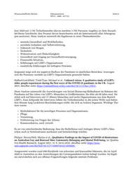 Wissenschaftliche Dienste Dokumentation Seite 6 WD 9 - 3000 - 017/22 Juni 2020 mit 1.745 Teilnehmenden (davon machten 1.705 Personen Angaben zu ihrer Sexuali tät/ihrem Geschlecht, drei Prozent davon bezeichneten sich als heterosexuell) aller Altersgrup pen analysiert. Diese Analyse unterteilt die Ergebnisse in neun Themenbereiche: – mentale Gesundheit und Wohlbefinden, – suizidale Gedanken und Selbstverletzung, – Gebrauch von Drogen, – Sicherheit, – Wohnsituation und Obdachlosigkeit, – Gesundheit und Zugang zur Gesundheitsversorgung, – Finanzielle Situation, – Erfahrungen mit LSBT+ Organisationen – zusätzliche Erfahrungen der befragten Personen. Insgesamt zeige sich ein negativer Einfluss der Pandemie in sämtlichen Bereichen, weswegen sich die Personen verstärkt an LSBT+ Organisationen gewendet hätten. Hafford-Letchfield, Trish/Toze, Michael et al., Unheard voices: A qualitative study of LGBT+ older people experiences during the first wave of the COVID-19 pandemic in the UK, August 2021, abrufbar unter https://onlinelibrary.wiley.com/doi/10.1111/hsc.13531. Diese Analyse untersucht die Auswirkungen von Social-Distancing-Maßnahmen im Rahmen der Pandemie auf das Leben von LSBT+ Menschen in Großbritannien, die älter als 60 Jahre sind. Sie stützt sich auf Interviews mit 17 älteren Menschen und sechs Organisationen aus dem Bereich LSBT+. Zum Zeitpunkt der Interviews lebten die Teilnehmenden in der ersten Welle und hatten drei Monate lang Lockdown-Beschränkungen erlebt, die sich zu lockern begannen. Wichtige The men waren: – Risikofaktoren für die jeweiligen Personen und Organisationen, – Pflege, – Vernetzung, – Politisierung von Fragen des Alterns – Kommunikation, auch virtuell. Es sei von entscheidender Bedeutung, dass die Bedürfnisse und Anliegen älterer LGBT+ Men schen auch in Notsituationen anerkannt und berücksichtigt würden. Philpot, Steven/Holt, Martin et al., Qualitative Findings on the Impact of COVID-19 Restrictions on Australian Gay and Bisexual Men: Community Belonging and Mental Well-being, in: Qualita tive Health Research, August 2021, 31 S. 2414–2425, abrufbar unter https://jour nals.sagepub.com/doi/full/10.1177/10497323211039204. Ausgewertet wurden rund 490 Rückläufe von schwulen und bisexuellen Männern, die im April 2020 in Australien zu den Auswirkungen der Coronapandemie online befragt wurden. Im Ergeb nis entwickelten sich aus offenen Fragestellungen folgende zentrale Probleme: