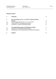 Unterabteilung Europa Ausarbeitung Seite 3 Fachbereich Europa PE 6 - 3000 - 015/22 Inhaltsverzeichnis 1. Einleitung 4 2. Zur Anwendung von Art. 115 AEUV im Bereich direkter Steuern 4 2.1. Entstehungsgeschichte der Art. 114, 115 AEUV 5 2.2. Unterschiede im Gesetzgebungsverfahren 6 2.3. Verhältnis zu anderen Rechtsgrundlagen 6 3. Zur Befugnisübertragung im Richtlinienvorschlag 7 3.1. Allgemein zur delegierten Rechtssetzung 7 3.2. Bezugspunkte und Ausgestaltung der Befugnisübertragung 7 4. Ergebnis 8