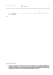 Wissenschaftliche Dienste Sachstand Seite 8 WD 4 - 3000 - 044/22 Staatsangehörigkeiten wurde erst durch das Transparenzregister- und Finanzinformations 12 gesetz eingeführt. *** 12 Gesetz zur europäischen Vernetzung der Transparenzregister und zur Umsetzung der Richtlinie (EU) 2019/1153 des europäischen Parlaments und des Rates vom 20. Juni 2019 zur Nutzung von Finanzinformationen für die Bekämpfung von Geldwäsche, Terrorismusfinanzierung und sonstige schweren Straftaten (Transparenzregister- und Finanzinformationsgesetz) vom 25. Juni 2021, Bundesgesetzblatt I, Seite 2083.