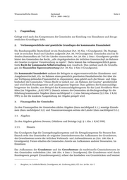 Wissenschaftliche Dienste Sachstand Seite 3 WD 4 - 3000 - 046/22 Inhaltsverzeichnis 1. Fragestellung 4 2. Verfassungsrechtliche und gesetzliche Grundlagen der kommunalen Finanzhoheit 4 3. Finanzquellen der Gemeinden 4 3.1. Abgaben 4 3.1.1. Steuern 4 3.1.2. Gebühren und Beiträge 5 3.2. Sonstige Einnahmen 6 3.3. Finanzzuweisungen 6