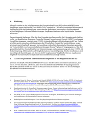 Wissenschaftliche Dienste Sachstand Seite 3 WD 9 - 3000 - 013/22 Inhaltsverzeichnis 1. Einleitung 4 2. Anzahl der gelieferten und verabreichten Impfdosen in den Mitgliedstaaten der EU 4 3. Gemeldete Verdachtsfälle in der Europäischen Datenbank 7