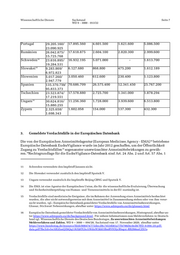 Wissenschaftliche Dienste Sachstand Seite 7 WD 9 - 3000 - 013/22 Portugal 29.205.160/ 17.895.560 4.601.500 1.621.600 5.086.500 23.090.925 Rumänien 26.042.875/ 17.618.875 2.604.100 2.820.300 2.999.600 15.725.768 11 Schweden 23.616.895/ 16.932.195 5.071.000 - 1.613.700 19.284.531 12 Slowakei 9.283.869/ 6.127.680 868.800 475.200 1.612.189 6.972.823 Slowenien 5.017.260/ 3.050.460 612.600 230.400 1.123.800 2.947.779 Spanien 135.370.759/ 70.686.709 26.575.400 12.341.450 25.767.200 95.833.373 Tschechien 23.523.874/ 17.578.880 2.725.700 1.341.000 1.878.294 17.219.551 13 Ungarn 30.624.816/ 11.256.360 1.728.000 3.939.600 6.513.800 15.880.255 Zypern 2.325.658/ 1.602.058 154.000 137.300 432.300 1.698.343 3. Gemeldete Verdachtsfälle in der Europäischen Datenbank 14 Die von der Europäischen Arzneimittelagentur (European Medicines Agency - EMA) betriebene Europäische Datenbank EudraVigilance wurde im Jahr 2012 geschaffen, um der Öffentlichkeit 15 Zugang zu Verdachtsfällen sogenannter unerwünschter Arzneimittelwirkungen zu gewäh- 16 ren. Rechtsgrundlage für die EudraVigilance-Datenbank sind Art. 24 Abs. 2 und Art. 57 Abs. 1 11 Schweden verwendete den Impfstoff Janssen nicht. 12 Die Slowakei verwendet zusätzlich den Impfstoff Sputnik V. 13 Ungarn verwendet zusätzlich die Impfstoffe Beijing CBNG und Sputnik V. 14 Die EMA ist eine Agentur der Europäischen Union, die für die wissenschaftliche Evaluierung, Überwachung und Sicherheitsüberprüfung von Human- und Tierarzneimitteln in der EU zuständig ist. 15 Verdachtsfälle sind medizinische Ereignisse, die im Rahmen der Anwendung eines Arzneimittels beobachtet wurden, die aber nicht notwendigerweise mit dem Arzneimittel in Zusammenhang stehen oder von ihm verur- sacht wurden, vgl.: Europäische Datenbank gemeldeter Verdachtsfälle von Arzneimittelnebenwirkungen, Glossar, Stichwort Nebenwirkungen, abrufbar unter https://www.adrreports.eu/de/glossary.html 16 Europäische Datenbank gemeldeter Verdachtsfälle von Arzneimittelnebenwirkungen, Hintergrund, abrufbar un- ter https://www.adrreports.eu/de/background.html. Für nähere Informationen zum Meldeverfahren in Deutsch- land vgl. Wissenschaftliche Dienste des Deutschen Bundestages, Zu unerwünschten Arzneimittelwirkungen: Meldeverfahren und Zahlen, WD 9 – 3000 – 094/20, Sachstand vom 17. November 2020, abrufbar unter https://www.bundestag.de/resource/blob/808474/772decd8c74534b81a77f4798d4c0ed8/WD -9-094-20-pdf- data.pdf?fbclid=IwAR3ZozQZ6Qq11KSj8TGleAWdnW3kbl1BmRVHXjcB5sgxi-RB2I66szCZS7o.