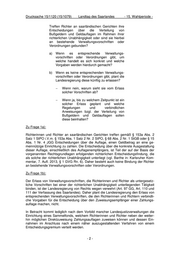 Drucksache 15/1120 (15/1079) Landtag des Saarlandes - 15. Wahlperiode - Treffen Richter an saarländischen Gerichten ihre Entscheidungen über die Verteilung von Bußgeldern und Geldauflagen im Rahmen ihrer richterlichen Unabhängigkeit oder sind sie hierbei an bestehende Verwaltungsvorschriften oder Verordnungen gebunden? a) Wenn es entsprechende Verwaltungs- vorschriften oder Verordnungen gibt, um welche handelt es sich konkret und welche Vorgaben werden hierdurch gemacht? b) Wenn es keine entsprechenden Verwaltungs- vorschriften oder Verordnungen gibt, plant die Landesregierung diese künftig zu erlassen? Wenn nein, warum sieht sie vom Erlass solcher Vorschriften ab? Wenn ja, bis zu welchem Zeitpunkt ist ein solcher Erlass geplant und welche Regelungen und verbindlichen Anweisungen bzgl. der Verteilung von Bußgeldern und Geldauflagen sollen diese beinhalten? Zu Frage 1a): Richterinnen und Richter an saarländischen Gerichten treffen gemäß § 153a Abs. 2 Satz 1 StPO i.V.m. § 153a Abs. 1 Satz 2 Nr. 2 StPO, § 68 Abs. 2 Nr. 1 StGB oder § 15 Abs. 1 Nr. 4 JGG Entscheidungen über die Auflage, einen Geldbetrag an eine ge- meinnützige Einrichtung zu zahlen. Die Entscheidung über die konkrete Ausgestaltung dieser Auflage, einschließlich des Auflagenempfängers, ist Teil der auf der Basis der vorgenannten Rechtsgrundlagen erfolgenden richterlichen Entscheidungsfindung, die als solche der richterlichen Unabhängigkeit unterliegt (vgl. Barthe in: Karlsruher Kom- mentar, 7. Aufl. 2013, § 1 GVG Rn. 6). Daher besteht auch keine Bindung der Richter an bestehende Verwaltungsvorschriften oder Verordnungen. Zu Frage 1b): Der Erlass von Verwaltungsvorschriften, die Richterinnen und Richter als untergesetz- liche Vorschriften bei einer der richterlichen Unabhängigkeit unterliegenden Tätigkeit binden, ist der Landesregierung von Rechts wegen verwehrt (Art. 97 GG, Art. 110 und 111 der Verfassung des Saarlandes). Daher plant die Landesregierung den Erlass von entsprechenden Verwaltungsvorschriften, die den Richterinnen und Richtern verbindli- che Vorgaben für die Entscheidung über den Zuweisungsempfänger einer Zahlungs- auflage machen, nicht. In Betracht kommt lediglich nach dem Vorbild mancher Landesjustizverwaltungen die Einrichtung eines Sammelfonds, welchem Richterinnen und Richter neben der weiter- hin möglichen Direktzuweisung Zahlungsauflagen zuweisen können und dessen Ein- nahmen im Anschluss nach einem näher auszugestaltenden Verfahren von einem Entscheidungsgremium verteilt werden. -2-