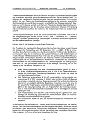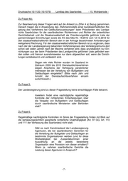 Drucksache 15/1120 (15/1079) Landtag des Saarlandes - 15. Wahlperiode - Zu Frage 4b): Zur Beantwortung dieser Fragen wird auf die Antwort zu Ziffer 4 a) Bezug genommen. Danach tragen die in Anwendung des „Rahmenmodells einer bundeseinheitlichen Re- gelung des Verfahrens bei Geldbußenzuweisungen“ beim Präsidenten des Landge- richts Saarbrücken für die saarländischen Richterinnen und Richter der ordentlichen Gerichtsbarkeit und die Staatsanwaltschaft als Orientierungshilfe geführte Liste der gemeinnützigen Einrichtungen sowie die AV des MdJ Nr. 15/2012 vom 12.12.2012 für den staatsanwaltschaftlichen Bereich den in der Anfrage bezeichneten Anforderungen weitgehend Rechnung. Für den staatsanwaltschaftlichen Bereich ist zu ergänzen, dass nach der der Landesregierung bekannten Verfahrenspraxis des Verteilergremiums dort schon seit vielen Jahren nach der Maxime verfahren wird, dass grundsätzlich nur Ein- richtungen aus der beim Präsidenten des Landgerichts geführten Liste gefördert wer- den sollen und hiervon ausnahmsweise nur dann abgewichen soll, wenn die Einrich- tungen amtsbekannt und verlässlich sind. Gegen wie viele Richter wurden im Saarland im Zeitraum 2009 bis 2013 Dienstaufsichtsverfahren wegen Anscheins der Verfolgung persönlicher Interessen bei der Verteilung von Bußgeldern und Geldauflagen eingeleitet? (Bitte nach Jahr und Anzahl der Dienstaufsichtsverfahren einzeln aufschlüsseln.) Zu Frage 5: Der Landesregierung sind zu dieser Fragestellung keine einschlägigen Fälle bekannt. Inwiefern findet eine nachträgliche regelmäßige Kontrolle der richterlichen Entscheidungen über die Vergabe von Bußgeldern und Geldauflagen durch saarländische Ministerien oder Behörden statt? Zu Frage 6: Regelmäßige nachträgliche Kontrollen im Sinne der Fragestellung finden mit Blick auf die verfassungsrechtlich garantierte richterliche Unabhängigkeit (Art. 97 GG, Art. 110 und 111 der Verfassung des Saarlandes) nicht statt. Gibt es nach Kenntnisstand der Landesregierung Agenturen, die bei saarländischen Gerichten für die Verteilung der Bußgelder und Geldauflagen an bestimmte Organisationen werben (und für diese Werbetätigkeit bei Zustandekommen einer Auszahlung an die jeweils beworbene Organisation eine Provision von dieser erhalten)? Wenn ja, nehmen saarländische Gerichte die Leistung dieser Agenturen in Anspruch? -7-