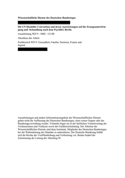 Wissenschaftliche Dienste des Deutschen Bundestages Die UN Disability Convention und deren Auswirkungen auf die Zwangsunterbrin- gung und -behandlung nach dem PsychKG Berlin Ausarbeitung WD 9 - 3000 - 121/08 Abschluss der Arbeit: Fachbereich WD 9: Gesundheit, Familie, Senioren, Frauen und Jugend Ausarbeitungen und andere Informationsangebote der Wissenschaftlichen Dienste geben nicht die Auffassung des Deutschen Bundestages, eines seiner Organe oder der Bundestagsverwaltung wieder. Vielmehr liegen sie in der fachlichen Verantwortung der Verfasserinnen und Verfasser sowie der Fachbereichsleitung. Die Arbeiten der Wissenschaftlichen Dienste sind dazu bestimmt, Mitglieder des Deutschen Bundestages bei der Wahrnehmung des Mandats zu unterstützen. Der Deutsche Bundestag behält sich die Rechte der Veröffentlichung und Verbreitung vor. Beides bedarf der Zustimmung der Leitung der Abteilung W.