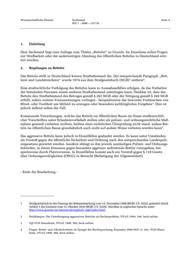 Wissenschaftliche Dienste Sachstand Seite 4 WD 7 - 3000 – 157/16 1. Einleitung Dem Sachstand liegt eine Anfrage zum Thema „Bettelei“ zu Grunde. Im Einzelnen sollen Fragen zur Strafbarkeit oder der anderweitigen Ahndung des öffentlichen Bettelns in Deutschland erör- tert werden. 2. Regelungen zu Bettelei Das Betteln stellt in Deutschland keinen Straftatbestand dar. Der entsprechende Paragraph „Bett- lerei und Landstreicherei“ wurde 1974 aus dem Strafgesetzbuch (StGB) entfernt . 1 2 Eine strafrechtliche Verfolgung des Bettelns kann in Ausnahmefällen erfolgen, da das Verhalten der bettelnden Personen einem anderen Straftatbestand unterliegen kann. Denkbar ist, dass das Betteln den Straftatbestand des Betruges gemäß § 263 StGB oder der Nötigung gemäß § 240 StGB erfüllt, sofern weitere Voraussetzungen vorliegen - beispielsweise das bewusste Vortäuschen von Blind- oder Taubheit um Mitleid zu erzeugen oder besonders aufdringliches Vorgehen . Dies ist 3 jedoch äußerst selten der Fall. Kommunale Verordnungen, welche das Betteln im öffentlichen Raum im Sinne straßenrechtli- cher Vorschriften unter Erlaubnisvorbehalt stellen oder als polizei- und ordnungsrechtliche Maß- nahme generell verbieten wollten, hielten einer rechtlichen Überprüfung nicht stand, sodass Bet- teln im öffentlichen Raum grundsätzlich auch nicht auf andere Weise verboten werden kann . 4 Das aggressive Betteln kann jedoch in Einzelfällen geahndet werden. Es kann unter Umständen als Verstoß gegen die öffentliche Sicherheit und Ordnung nach den entsprechenden Landespoli- zeigesetzen gewertet werden. Insofern obliegt es den jeweils zuständigen Polizei- und Ordnungs- behörden, in ihrem Ermessen gegen besonders aggressiv auftretende Bettler vorzugehen, bei- spielsweise durch Platzverweise. In Einzelfällen kommt auch ein Verstoß gegen § 118 Gesetz über Ordnungswidrigkeiten (OWiG) in Betracht (Belästigung der Allgemeinheit). - Ende der Bearbeitung - 1 Strafgesetzbuch in der Fassung der Bekanntmachung vom 13. November 1998 (BGBl. I S. 3322), geändert durch Artikel 1 des Gesetzes vom 11. Oktober 2016 (BGBl. I S. 2226). Abrufbar in englischer Sprache unter http://www.gesetze-im-internet.de/englisch_stgb/index.html. 2 Holzkämper: Die Unterbringung aggressiven Bettelns als Rechtsproblem, NVwZ 1994, 146, beck-online. 3 Vgl.VGH Mannheim, NVwZ 1999, 560, beck-online. 4 Finger: Bettel- und Alkoholverbote im Spiegel der Rechtsprechung, KommJur 2006 Heft 12, 441; VGH Mann- heim, NVwZ 1999, 560, beck-online.