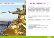 Le Projet une palette dans un é crin Le projet : « Création d’un concept de marketing transnational commun pour le tourisme dans la Grande Région » repose sur l’idée de développer un marketing touristique commun pour la destination Grande Région. La soumission au programmeInterreg IV-A qui entre dans le cadre du Fonds Européen de Développement Régional (FEDER) se fonde sur «Vision d’avenir 2020» du Sommet de la Grande Région. Il y est mentionné qu’un marketing touristique commun est nécessaire (voir « Vision d’avenir 2020», 2003 p. 33). Notre projet reprend cette mission et les objectifs qui y sont liés. En même temps, il constitue le cadre du développement d e mesures qui se déclinent en marketing interne et marketing externe à destination des clientèles-cibles ainsi qu’en actions de qualification et de coopération à destination des professionnels du tourisme. 02 03