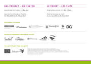 DAS PRO J EKT – d i e fa k t e n LE PRO J ET – l e s fa i t s Gesamtbudget des Projekts: 2,5 Mio. Euro Budget global du projet : 2,5 Mio. d’Euros Dauer der Durchführung des Projektes: Durée de réalisation du projet : 01. März 2009 bis 28. Februar 2014 du 1er mars 2009 au 28 février 2014 Kofinanzierer | Cofinanceurs Touristische Projektpartner | Opérateurs du Tourisme mit grenzenlosem Charme Interreg IV-A Projekt / Projet Interreg IV-A „Aufbau eines transnationalen Marketingkonzepts für den Tourismus in der Großregion“ „Création d’un concept de marketing transnational commun pour le tourisme dans la Grande Région“ Gefördert durch den Europäischen Fonds für regionale Entwicklung im Rahmen des Programms INTERREG IV-A Großregion. Projet cofinancé par le Fonds européen de développement régional dans le cadre du programme INTERREG IV-A Grande Région. Die Europäische Union investiert in Ihre Zukunft. L’Union européenne investit dans votre avenir.