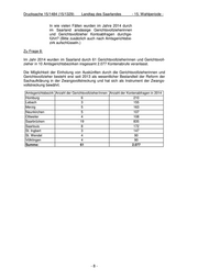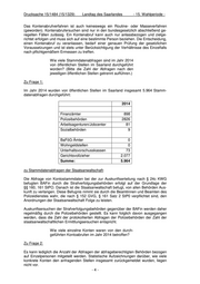 Drucksache 15/1484 (15/1329) Landtag des Saarlandes - 15. Wahlperiode - Das Kontenabrufverfahren ist auch keineswegs ein Routine- oder Masseverfahren (geworden). Kontenabrufersuchen sind nur in den bundesgesetzlich abschließend ge- regelten Fällen zulässig. Ein Kontenabruf kann auch nur anlassbezogen und zielge- richtet erfolgen und muss sich auf eine bestimmte Person beziehen. Die Entscheidung, einen Kontenabruf zu veranlassen, bedarf einer genauen Prüfung der gesetzlichen Voraussetzungen und ist stets unter Berücksichtigung der Verhältnisse des Einzelfalls nach pflichtgemäßem Ermessen zu treffen. Wie viele Stammdatenabfragen sind im Jahr 2014 von öffentlichen Stellen im Saarland durchgeführt worden? (Bitte die Zahl der Abfragen nach den jeweiligen öffentlichen Stellen getrennt aufführen.) Zu Frage 1: Im Jahr 2014 wurden von öffentlichen Stellen im Saarland insgesamt 5.964 Stamm- datenabfragen durchgeführt: 2014 Finanzämter 898 Polizeibehörden 2826 Arbeitsagenturen/Jobcenter 81 Sozialbehörden 9 BaFöG-Ämter 0 Wohngeldstellen 0 Unterhaltsvorschusskassen 73 Gerichtsvollzieher 2.077 Summe: 5.964 zu Stammdatenabfragen der Staatsanwaltschaft: Die Abfrage von Kontostammdaten bei der zur Auskunftserteilung nach § 24c KWG befugten BAFin durch die Strafverfolgungsbehörden erfolgt auf der Grundlage der §§ 160, 161 StPO. Danach ist die Staatsanwaltschaft befugt, von allen Behörden Aus- kunft zu verlangen. Diese Befugnis nimmt sie durch die Beamtinnen und Beamten des Polizeidienstes wahr, die nach § 152 GVG, § 161 Satz 2 StP0 verpflichtet sind, den Anordnungen der Staatsanwaltschaft Folge zu leisten. Auskunftsersuchen der Strafverfolgungsbehörden gegenüber der BAFin werden daher regelmäßig durch die Polizeibehörden gestellt. Es kann folglich davon ausgegangen werden, dass die Zahl der protokollierten Abfragen der Polizeibehörden der Zahl der staatsanwaltschaftlichen Ermittlungsersuchen entspricht. Wie viele einzelne Konten waren von den durch- geführten Kontoabrufen im Jahr 2014 betroffen? Zu Frage 2: Es kann lediglich die Anzahl der Abfragen der abfrageberechtigten Behörden bezogen auf Einzelpersonen mitgeteilt werden. Statistische Aufzeichnungen darüber, wie viele konkrete Konten den anfragenden Stellen insgesamt zurückgemeldet wurden, liegen nicht vor. -4-