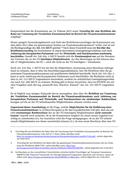 Unterabteilung Europa Ausarbeitung Seite 3 Fachbereich Europa PE 6 – 3000 – 15/13 Inhaltsverzeichnis 1. Einleitung 4 2. Neuer Legislativvorschlag durch die Kommission? 6 3. Ausscheiden aus der Verstärkten Zusammenarbeit? 6 3.1. Freiwilliges Ausscheiden? 7 3.1.1. Ausscheiden im Konsens 7 3.1.2. Einseitiges Ausscheiden? 8 3.2. Ausschluss aus der VZ? 10 3.3. Faktisches Ausscheiden aus der VZ 11 4. Neuer Beschluss über eine Verstärkte Zusammenarbeit in anderer Zusammensetzung? 12 5. Möglichkeit eines nationalen Alleingangs? 12 5.1. Vereinbarkeit mit europäischem Sekundärrecht 12 5.1.1. Grundsätzliches Verbot der Erhebung indirekter Steuern (Art. 5 Richtlinie 2008/7/EG) 13 5.1.2. Ausnahmen vom generellen Verbot (Art. 6 Richtlinie 2008/7/EG) 13 5.1.3. Ergebnis 16 5.2. Vereinbarkeit mit der primärrechtlichen Kapitalverkehrsfreiheit 16 5.2.1. Schutzbereich der Kapitalverkehrsfreiheit 16 5.2.2. Grenzüberschreitender Sachverhalt 17 5.2.3. Beschränkungen der Kapitalverkehrsfreiheit 17 5.2.4. Rechtfertigung 17 5.2.4.1. Rechtfertigungsgrund 18 5.2.4.2. Rechtfertigungsschranken: Grundsatz der Verhältnismäßigkeit 19 5.2.5. Ergebnis 22 5.3. Erfordernis der vorherigen Beendigung der VZ? 22 5.4. Ergebnis 23 6. Außervertragliche Kooperation 23 7. Zusammenfassung 24