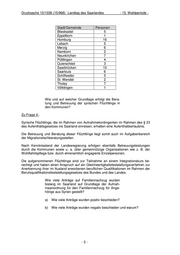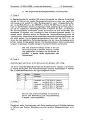 Drucksache 15/1036 (15/968) Landtag des Saarlandes - 15. Wahlperiode - Stadt/Gemeinde Personen Blieskastel 5 Eppelborn 1 Homburg 16 Lebach 5 Merzig 6 Namborn 2 Neunkirchen 7 Püttlingen 4 Quierschied 3 Saarbrücken 10 Saarlouis 6 Schiffweiler 5 St. Wendel 2 Tholey 7 Völklingen 1 Wie und auf welcher Grundlage erfolgt die Bera- tung und Betreuung der syrischen Flüchtlinge in den Kommunen? Zu Frage 4:. Syrische Flüchtlinge, die im Rahmen von Aufnahmekontingenten im Rahmen des § 23 des Aufenthaltsgesetzes ins Saarland einreisen, erhalten eine Aufenthaltserlaubnis. Die Betreuung und Beratung dieser Flüchtlinge liegt somit auch im Aufgabenbereich der Migrationsfachberatungsstellen. Nach Kenntnisstand der Landesregierung erfolgen ebenfalls Betreuungsleistungen durch die Kommunen sowie u. a. über gemeinnützige Organisationen wie z. B. der Wohlfahrtspflege bzw. durch ehrenamtlich engagierte Einzelpersonen. Die aufgenommenen Flüchtlinge sind zur Teilnahme an einem Integrationskurs be- rechtigt und haben einen Anspruch auf ein Gleichwertigkeitsfeststellungsverfahren zur Anerkennung ihrer im Ausland erworbenen beruflichen Qualifikationen im Rahmen der Berufsqualifikationsfeststellungsgesetzes des Bundes und des Landes. Wie viele Anträge auf Familiennachzug wurden bislang im Saarland auf Grundlage der Aufnah- meanordnung für den Familiennachzug für Ange- hörige aus Syrien gestellt? a) Wie viele Anträge wurden positiv beschieden? b) Wie viele Anträge wurden negativ beschieden und warum? -3-