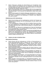 schaftsinitiative LEADER II) vielfältige Initiativen ergriffen. Ergebnis in Bezug auf die Rele− vanz für Arbeit und Einkommen in der Region ist die Zuerkennung der geschützten geo− graphischen Herkunftsbezeichnung für Spreewälder Erzeugnisse durch die EU. Beispiele regionalen Engagements sind auch die Ergebnisse der Umsetzung von LEADER II sowie die in diesem Jahr begonnene Umsetzung der Gemeinschaftsinitiative LEADER + durch die regionalen Aktionsgruppen. zu Frage 5: Auf welche Erfahrungen anderer Bundesländer wird zurückgegriffen? Gibt es Beispiele für Länder übergreifende Zusammenarbeit, um Ent− wicklungen zu forcieren und zu beschleunigen, und wenn ja, welche? Durch regelmäßige Bund−Länder−Besprechungen sowie die Mitarbeit von Vertretern Brandenburgs in Gremien, die inhaltliche Belange der ländlichen Entwicklung koordinieren, insbesondere im Rahmen der Arbeitsgemeinschaft Landentwicklung (Arge Landentwick− lung) sind Erfahrungsaustausche gewährleistet. Beispiele für eine übergreifende Zusammenarbeit werden durch die Akteure in den ländli− chen Räumen (Kommunen, Private) bestimmt. Sie gibt es insbesondere mit Partnern in den Ländern Sachsen−Anhalt, Mecklenburg−Vorpommern und Sachsen sowie mit der Republik Polen. zu Frage 6: Mit welchen charakteristischen Veränderungen des ländlichen Raums rechnet die Landesregierung in den nächsten Jahren ? Da die Gebietskategorie "ländliche Räume" sowohl im engeren Verflechtungsraum als auch im äußeren Entwicklungsraum angesiedelt ist, lässt sich eine übergreifende Trendaussage für charakteristische Veränderungen in den ländlichen Räumen nicht treffen. Die Entwick− lungen werden kleinräumig differenziert, z.T. auch innerhalb von Landkreisen, disparat verlaufen. Entsprechende Aussagen für einzelne Teilräume können z.B. der vorliegenden Bevölkerungsprognose für das Land Brandenburg entnommen werden. II. Internationale und nationale Rahmenbedingungen für die Förderung ländli− cher Räume Politischer Handlungsrahmen zu Frage 7: Welche internationalen Vereinbarungen und europäischen Regelungen sind speziell auf Entwicklungen im ländlichen Raum ausgerichtet, welche grundsätzlichen Festlegungen werden darin getroffen? Die Politik zur Entwicklung des ländlichen Raumes in Europa wird in der laufenden För− derperiode (2000 − 2006) mit einer Reihe komplexer Instrumente durchgeführt und umfasst insbesondere die nachfolgenden EU−Verordnungen: − Verordnung (EG) Nr. 1257/1999 des Rates vom 17. Mai 1999 über die Förderung der Entwicklung des ländlichen Raumes durch den Europäischen Ausrichtungs− und Garantiefonds für die Landwirtschaft (EAGFL) und zur Änderung bzw. Aufhe− bung bestimmter Verordnungen. − Verordnung (EG) Nr. 2603/1999 der Kommission vom 9. Dezember 1999 mit Be− stimmungen für den Übergang auf die Förderung der Entwicklung des ländlichen Raumes gemäß der Verordnung (EG) Nr. 1257/1999 des Rates.
