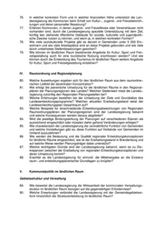 76. In welcher konkreten Form und in welcher finanziellen Höhe unterstützt die Lan− desregierung die Kommunen beim Erhalt von Kultur−, Jugend− und Freizeiteinrich− tungen und deren personeller Besetzung? 77. Erfahren Kommunen, in denen Jugend− und Freizeitklubs oder Vereinshäuser nicht vorhanden sind, durch die Landesregierung spezielle Unterstützung mit dem Ziel, künftig leer stehende öffentliche Gebäude für soziale, kulturelle und jugendpoliti− sche Zwecke nutzen zu können, und wenn ja, in welchen konkreten Formen? 78. Wie viele soziokulturelle Projekte gibt es derzeit in Gemeinden unter 5 000 Ein− wohnern und wie viele Arbeitsplätze sind an diese Projekte gebunden und wie viele durch unbefristete Stellenbesetzungen gesichert? 79. Wie können im ländlichen Raum bestehende Angebote für Kultur, Sport und Frei− zeitgestaltung auch für eine touristische Nutzung erschlossen werden? Und wie können durch die Entwicklung des Tourismus im ländlichen Raum weitere Angebote für Kultur, Sport und Freizeitgestaltung entstehen? IV. Raumordnung und Regionalplanung 80. Welche Auswirkungen ergeben sich für den ländlichen Raum aus dem raumordne− rischen Leitbild der dezentralen Konzentration? 81. Wie erfolgt die planerische Umsetzung für die ländlichen Räume in den Regional− plänen der Planungsregionen des Landes? Welchen Stellenwert misst die Landes− regierung zukünftig den Regionalen Planungsstellen bei? 82. Welche Erfahrungen bestehen bei der Umsetzung der Ziele und Grundsätze des Landesentwicklungsprogramms? Welchen aktuellen Erarbeitungsstand weist der Landesentwicklungsplan Gesamtraum auf? 83. Welche Beispiele für einschneidende Entwicklungsabweichungen von Regionalen Raumordnungsplänen der Planungsregionen sind der Landesregierung bekannt und welche Konsequenzen werden daraus abgeleitet? 84. Wird die jeweilige Bindungswirkung der Planungen auf verschiedenen Ebenen als ausreichend eingeschätzt oder müssten dahin gehend Veränderungen erfolgen? 85. Wie charakterisiert die Landesregierung die zentralörtliche Funktion von Gemeinden und welche Vorstellungen gibt es, diese Funktion auf Verbände von Gemeinden im Umland auszudehnen? 86. Wie werden die Bedeutung und die Qualität regionaler Entwicklungskonzeptionen für ländliche Räume eingeschätzt, wie ist der Erarbeitungsstand in Brandenburg und auf welche Weise werden Planungsträger dabei unterstützt? 87. Welche wichtigsten Gründe sind der Landesregierung bekannt, wenn es zu Dis− krepanzen zwischen der Erarbeitung von regionalen Entwicklungskonzeptionen und deren Umsetzung kommt? 88. Erachtet es die Landesregierung für sinnvoll, die Mittelvergabe an die Existenz raum− und entwicklungsplanerischer Grundlagen zu knüpfen? V. Kommunalpolitik im ländlichen Raum Gebietsstruktur und Verwaltung 89. Wie bewertet die Landesregierung die Wirksamkeit der kommunalen Verwaltungs− struktur im ländlichen Raum bezogen auf die gegenwärtigen Erfordernisse? 90. Welche Erwartungen verbindet die Landesregierung mit der Gemeindegebietsre− form hinsichtlich der Strukturentwicklung im ländlichen Raum?