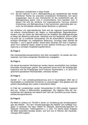 tisierbaren Landeskliniken in diese Anstalt. 4./5. Bei den Optionen 4 und 5. (Maßregelvollzug als Landesbetrieb oder Anstalt öffentlichen Rechts bei ansonsten privatisiertem Klinikbetrieb) wird davon ausgegangen, dass es zwar Interessenten für die Landeskliniken gibt, der Maßregelvollzug jedoch nicht in privatrechtlicher Form betrieben wird. In diesem Fall wird die rechtliche und organisatorische Trennung zwischen Krankenhaus und Maßregevollzug in Kauf genommen, gleichzeitig aber ver− sucht, die Schnittstelle zwischen beiden Bereichen zu optimieren. Aus fachlicher und regionalpolitischer Sicht wird der regionale Zusammenschluss mit anderen Krankenhäusern der Region zu leistungsfähigen Regionalkranken− häusern unter der Option der Wahrnehmung der Aufgaben des Maßregelvollzuges im Wege der Beleihung befürwortet. Allerdings sind aus fiskalischer Sicht in jedem Fall auch der zu erzielende Verkaufserlös und die wirtschaftliche Kompetenz der künftigen Klinikträger von maßgeblicher Bedeutung. Vorrangig sollen deshalb die Varianten 1. und 2. geprüft werden. Soweit diese Varianten sich nicht in angemes− sener Form realisieren lassen, bedarf es einer weiteren Erörterung in der Landes− regierung zu sonstigen Ausgliederungsalternativen. Zu Frage 3: Das Interessenbekundungsverfahren wird offen durchgeführt. Es werden den Inte− ressenten noch keine zwingenden Rechtsformen vorgegeben. Zu Frage 4: Die derzeit favorisierten Rechtsformen werden intensiv einschließlich ihrer künftigen finanziellen Auswirkungen geprüft. Dies geschieht einmal durch die Projektgruppe. Ergänzend wird die Projektgruppe durch externen Sachverstand, z. B. durch ent− sprechend spezialisierte Rechtsanwälte, unterstützt werden. Zu Frage 5: Gemäß § 11 der Landeshaushaltsordnung sind im Haushaltsplan 2004 alle im Haushaltsjahr zu erwartenden Einnahmen zu veranschlagen. Dies gebietet auch die prekäre Haushaltslage des Landes in besonderem Maße. Im Falle der Landeskliniken werden Verkaufserlöse für 2004 erwartet. Insgesamt wird von Erlösen in Millionenhöhe ausgegangen. Die mögliche Höhe der Ver− kaufserlöse wird allerdings erst bekannt sein nach der Durchführung eines Interes− senbekundungsverfahrens. Zu Frage 6: Die Mittel im Umfang von 700.000 dienen zur Verstärkung des Verwaltungsbud− gets des MASGF. Aus dem Verwaltungsbudget des MASGF sind vielfältige Aus− gaben zu bestreiten wie bspw. Mieten für Gebäude, Bewirtschaftungskosten für Gebäude, Portokosten, Telefongebühren u. a. mehr. Für welche dieser Aufgaben die Mittel letztendlich benötigt werden, wird sich erst im Rahmen des Haushalts− vollzuges 2004 ergeben.