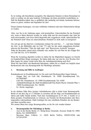2 Es ist wichtig, alle Einzelheiten anzugeben. Die allgemeine Situation in ihrem Heimatland ist nicht so wichtig wie die ganz konkrete Verfolgung, die ihnen persönlich wiederfahren ist. Falls Sie Bedenken haben, dass es gefährlich oder nachteilig sein könnte, bestimmte Informa- tionen zu geben, erklären und begründen Sie dies! Frauen könnten beantragen, von einer weiblichen Anhörerin und einer Dolmetscherin befragt zu werden. Alles, was Sie in der Anhörung sagen, wird protokolliert. Unterschreiben Sie das Protokoll erst, wenn es Ihnen übersetzt worden ist, nichts fehlt und Sie einverstanden sind. Sind Sie nicht einverstanden, weil etwas falsch dargestellt oder weggelassen wurde, unterschreiben Sie das Protokoll nicht! Denn ein unterschriebenes Protokoll ist nicht mehr zu korrigieren! Um sich gut auf das Interview vorzubereiten, können Sie sich hier ... ? ... (auf dem Gelände der Zast. in der Bibliothek oder im Cafe ???) oder bei den unten angegebenen Kontakt- adressen die Broschüre "Take the right steps" und "Basiswissen Asylrecht" besorgen. Sollte die Broschüre einmal nicht vorhanden sein, melden Sie sich bitte bei der Gruppe Ikiri c/o Café Olé Tel.: 0173/ 6024607. Wenn Ihr Asylantrag abgelehnt worden ist, haben Sie die Möglichkeit dagegen vor Gericht (in Frankfurt/Oder) Klage einzulegen. Sie haben dafür aber nur eine bis zwei Wochen Zeit! Bitte fragen Sie immer wieder beim Büro der Aufnahmeeinrichtung nach Post! Wenn Sie einen Brief vom Bundesamt bekommen, sollten Sie so schnell wie möglich einen Rechtsanwalt oder eine Beratungsstelle für Flüchtlinge aufsuchen. 1. Beratung und Hilfe in Asylfragen Kontaktadressen in Eisenhüttenstadt (wo Sie auch nach Rechtsanwälten fragen können) - Gruppe Ikiri c/o Café Olé, Glashüttenstr. 10, 15890 Eisenhüttenstadt Tel.: 0173/6024607 - Café Olé, Glashüttenstr. 10, 15890 Eisenhüttenstadt, Tel: 61081 - Ausländerbeauftragte der Stadt Eisenhüttenstadt Frau Katrin Heyerl, Zentraler Platz 1, 15890 Eisenhüttenstadt, Tel.: 566302 - Ev. Kirche (angefragt) In der direkten Nähe Ihres jetzigen Aufenthaltsortes gibt es leider keine Beratungsstelle. Berlin ist mit dem Zug in 1,5 Stunden zu erreichen und die Züge von Eisenhüttenstadt aus fahren jede halbe Stunde dorthin. Nach dem Ausländergesetz (§ 57 Abs. 2 AuslG) ist es Ihnen gestattet, Eisenhüttenstadt zu verlassen, um Termine bei Rechtsanwälten oder Bera- tungsstellen wahrzunehmen. Dafür benötigen Sie eine schriftliche Erlaubnis die das Bundes- amt ihnen ausstellen muss. Wir nennen Ihnen hier einige Beratungsstellen, an die Sie sich wenden können: 1. Beratungsstellen für Flüchtlinge in Berlin: - Asyl In der Kirche Berlin e.V. Heilig-Kreuz Gemeinde, Zossener Straße 65, 10961 Berlin, Tel: 030/69598525 - Bayouma Haus, Colbestr. 11, 10245 Berlin Tel/Fax: 030/29110320 oder 0172/5107597
