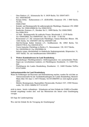 3 - Oase Pankow e.V., Schonensche Str. 9, 10439 Berlin, Tel. 030/4714071 Fax. 030/47002550 - Europa-Afrika - Kulturzentrum e.V. (EURAFRI), Oranienstr 159, 1 0969 Berlin, Tel./Fax 030/6147683 - Kontakt- und Beratungsstelle für außereuropäische Flüchtlinge, Oranienstr 159, 10969 Berlin, Tel. 030/6149400/-04, Fax 030/6154534 - Kurdisches Zentrum e.V., Dresdner Str.11, 10999 Berlin, Tel. 030/6159092 Fax 030/615914 - Al Nadi - Beratungsstelle für arabische Frauen, Moselstraße 3, 12159 Berlin Tel. 030/8520602, Fax 030/8593367, Die + Do 10 00 - 13 00 Uhr - Reistrommel e.V. (für vietnamesische Flüchtlinge), Tamara Hentschel, Rhinstr. 108, 12681 Berlin, Tel. 030/54957-448 Fax 030/54057-448 - Süd-Ost-Europa Kultur Zentrum e.V., Großbeerenstr. 88, 10963 Berlin, Tel. 030/2537799-0, Fax 030/2529-8574 - Verein Iranischer Flüchtlinge in Berlin e.V., Stresemannstr. 128, 10117 Berlin, Tel. 030/202904-63, Fax 030/209904-36 - Initiative gegen Abschiebehaft c/o Katholische Studentengemeinde, Klopstockstr. 31, 10557 Berlin, Tel. mit Anrufbeantworter 030/4100915 2. Weitere Kontaktadressen im Land Brandenburg - Brandenburger Flüchtlingsinitiative (Selbstorganisation von asylsuchenden Flücht- lingen aus verschiedenen Ländern), c/o Flüchtlingsrat, Eisenhartstr. 13, 14469 Pots- dam - Flüchtlingsrat des Landes Brandenburg, Eisenhartstr. 13, 14469 Potsdam Tel/Fax 0331/716499 Antirassismusstellen im Land Brandenburg Wenn Sie Erfahrungen mit Rassismus und Diskriminierung machen, wenden Sie sich bitte an: - Antirassismusstelle bei der Ausländerbeauftragten des Landes Brandenburg, Heinrich- Mann-Allee 103, haus 3, 14473 Potsdam, Tel 0331/8665954 (es wird englisch gespro- chen) - Mobiles Beratungsteam, Regionalbüro Fürstenwalde, Postfach 1527, 15505 Fürsten- walde, Tel. 03361-340689o 0177-4116130" nicht in einem - bereits vorhandenen - Schaukasten auf dem Gelände der ZABH in Eisenhüt- tenstadt ausgehängt werden darf, weil das Ministerium des Innern seine Genehmigung versagte. Ich frage die Landesregierung: Was sind die Gründe für die Versagung der Genehmigung?