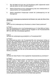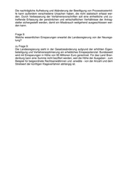 Die nachträgliche Aufhebung und Abänderung der Bewilligung von Prozesskostenhil- fe kann außerdem verschiedene Ursachen haben, die nicht statistisch erfasst wer- den. Durch Verbesserung der Verfahrensvorschriften soll eine einheitliche und zu- treffende Erfassung der persönlichen und wirtschaftlichen Verhältnisse der Antrag- steller sichergestellt werden, damit ein Missbrauch weitgehend ausgeschlossen wer- den kann. Frage 9: Welche wesentlichen Einsparungen erwartet die Landesregierung von der Neurege- lung? zu Frage 9: Die Landesregierung sieht in der Gesetzesänderung aufgrund der erhöhten Eigen- beteiligung und Verfahrensoptimierung ein erhebliches Einsparpotenzial. Bundesweit wird mit Einsparungen in Höhe von 95 Millionen Euro gerechnet. Für das Land Bran- denburg kann eine Summe nicht beziffert werden, weil die Höhe der Ausgaben - zum Beispiel für beigeordnete Rechtsanwältinnen und -anwälte - von der Anzahl und dem Streitwert der künftigen Klageverfahren abhängig ist.