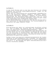 zu Frage 3: In der Stadt Wriezen gibt es das Haus der Freizeit mit offenen Angeboten und einzelnen Arbeitsgemeinschaften. Träger ist der Verein Pro Wriezen e.V. Ferner gibt es 8 Sportvereine mit entsprechenden Jugendabteilun- gen in den Sportarten Fußball, Handball, Volleyball, Kegeln, Judo-Karate, Motorsport, Basketball, Radsport. An einem Breiten- sportprojekt der Kreissportjugend beteiligen sich ca. 40-50 Jugendliche der Region Wriezen regelmäßig. Dieses Projekt widmet sich insbesondere auch gefährdeten Jugendlichen. Im Amt Barnim-Oderbruch, in dem sich auch der Ort Wriezen befin- det, existieren 14 Jugendfeuerwehren, die Freizeitangebote un- terbreiten und regen Zuspruch finden. zu Frage 4: Eine Betreuung der Opfer von rechtsextremen Straftaten erfolgt u.a. auch im Rahmen des Gesetzes über die Entschädigung für Opfer von Gewalttaten (Opferentschädigungsgesetz - OEG). Im vorliegenden Fall ist der Geschädigte nach Bekanntwerden der Straftat durch das für seinen Wohnort zuständige Amt für Sozia- les und Versorgung in Frankfurt/Oder über mögliche Entschädi- gungsleistungen informiert worden. Gleichzeitig wurde eine ent- sprechende Antragstellung angeregt. Darüber hinaus sind spezielle Opferbetreuungsstellen der Landes- regierung im Land Brandenburg nicht vorhanden. Die Landesregie- rung unterstützt jedoch Beratungsstellen in freier Trägerschaft, die sich u. a. den Belangen der Opfer rechtsextremistisch moti- vierter Straftaten annehmen.