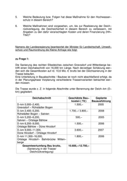5. Welche Bedeutung bzw. Folgen hat diese Maßnahme für den Hochwasser− schutz in diesem Bereich? 6. Welche Maßnahmen sind vorgesehen, um, bis zur Realisierung der Deich− rückverlegung, die Deichsicherheit in diesem Bereich zu verbessern, mit Angaben zu den dafür veranschlagten Kosten und deren Finanzierung (HH− Titel)? Namens der Landesregierung beantwortet der Minister für Landwirtschaft, Umwelt− schutz und Raumordnung die Kleine Anfrage wie folgt: zu Frage 1: Die Sanierung des rechten Elbedeiches zwischen Gnevsdorf und Wittenberge be− trifft einen Deichabschnitt von 16,000 km Länge. Nach derzeitiger Schätzung wer− den sich die Gesamtkosten auf rd. 10,6 Mio. brutto bei der Deichsanierung in der Trasse belaufen. Eine Unterteilung in Bauabschnitte / Baulose ist noch nicht abschließend erfolgt, da in der Planungsphase Vorplanung verschiedene Trassenvarianten betrachtet wer− den müssen. Die Trasse wurde z. Z. in folgende Abschnitte unter Benennung der Deich−km (D− km) gegliedert: Deichabschnitt Geschätzte Bau− Geplante kosten ( T ) Bauausführung D−km 0,000−2,400, 1.500,− 2005 Gnevsdorf − Rühstädter Bogen D−km 2,400−5,200, 1.700,−/ 3.800,− 2008 Rühstädter Bogen − Salvien D−km 5,200−6,200, 500,− 2005 Salvien − Ortslage Bählow D−km 6,200−9,000, 1.500,− 2006 Ortslage Bählow − Düne Hinzdorf D−km 9,000−11,300, 3.600,− 2007 Düne Hinzdorf − Ortslage Hinzdorf D−km 11,300−16,000, 1.800,− 2006 Ortslage Hinzdorf− Bahnbrücke Witten− berge Gesamtwertumfang Bau brutto, 10.600,−/12.700,− (Sanierung in der Trasse/ Deichrückverlegung)