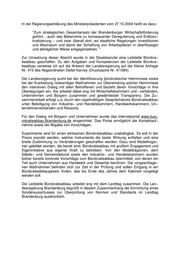 Landtag Brandenburg Drucksache 4/1980 4. Wahlperiode Antwort der Landesregierung auf die Kleine Anfrage Nr. 733 der Landtagsabgeordneten Kornelia Wehlan, Fraktion der PDS, Landtagsdrucksache 4/1797 vom 29.08.2005 Wortlaut der Kleinen Anfrage: "In Gesprächen vor Ort spürt man eine Erwartungshaltung an den durch den Landtag eingerichteten Sonderausschuss zum Bürokratieabbau. Vor allem erwartet man einen spürbaren Bürokratieabbau, der zu konkreten Arbeitser− leichterungen und Einsparungen von finanziellen Mitteln auch im Bereich Handwerk und Gewerbe führt. Ich frage die Landesregierung: 1. Wie bewerten Sie diese Erwartungshaltung und welche Möglichkeiten sehen Sie im Bereich Handwerk und Gewerbe, um zu konkreten Ar− beitserleichterungen und Einsparungen von finanziellen Mitteln zu kommen? 2. Werden Sie in diesem Zusammenhang den Vorschlag aus dem Be− reich Handwerk und Gewerbe, den die PDS unterstützt, die Umsatz− steuervoranmeldung online einzurichten, für den Sonderausschuss aufbereiten?" Namens der Landesregierung beantwortet der Chef der Staatskanzlei die Kleine Anfrage wie folgt: Frage 1: "Wie bewerten Sie diese Erwartungshaltung und welche Möglichkeiten sehen Sie im Bereich Handwerk und Gewerbe, um zu konkreten Arbeitserleichterungen und Einsparungen von finanziellen Mitteln zu kommen?" Antwort: Der Abbau von Bürokratie ist aus Sicht der Landesregierung eine der zentralen Aufgaben in der laufenden Legislaturperiode. Ziel ist eine spürbare Entlastung − vor allem der Wirtschaft − von unnötigen bürokratischen Hemmnissen. Damit werden mehr Freiräume für unternehmerische Initiative geschaffen. Dies wird bei den Be− troffenen letztlich auch zu Kosteneinsparungen und in der Folge zur Stärkung der Wettbewerbsfähigkeit der Unternehmen beitragen. Datum des Eingangs: 28.09.2005 / Ausgegeben: 04.10.2005