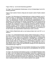 Landtag Brandenburg Drucksache 5/1749 5. Wahlperiode Antwort der Landesregierung auf die Kleine Anfrage 651 des Abgeordneten Dr. Andreas Bernig Fraktion DIE LINKE Drucksache 5/1587 Stopp des grundhaften Ausbaus der Landesstraße 861 in Plötzin Wortlaut der Kleinen Anfrage 651 vom 30.06.2010: Die Landesstraße 861 in Plötzin sollte lt. Straßenbauplan des Landes 2010 ausge- baut werden. Aufgrund der Finanzlage im Land erfolgte eine Verschiebung auf das Jahr 2011. Eine Nachfrage beim Landesbetrieb für Straßenwesen ergab, dass nun- mehr der geplante Ausbau für 2011 wiederum gestrichen werden soll und eine Ein- ordnung für das Jahr 2013 vorgesehen ist. Der gegenwärtige Zustand der Landes- straße ist trotz der Beseitigung der Winterschäden äußerst schlecht. Es bilden sich bei starken Regen an den Straßenrändern große Wasserlachen. Da gegenwärtig keine Gehwege vorhanden sind, ist es fast unmöglich, an der Straße entlang zu lau- fen. Ich frage die Landesregierung: 1. Ist es richtig, dass der Ausbau der L 861 erneut verschoben wird? 2. Wenn ja – wer hat die Entscheidung getroffen? 3. Nach welchen Kriterien erfolgt jetzt die Auswahl, welche Projekte realisiert wer- den? 4. Welche Möglichkeiten gibt es, das Ausbauvorhaben doch noch 2011 zu realisie- ren? 5. Welche Konsequenzen hat die terminliche Verschiebung des grundhaften Aus- baus der L 861 in Plötzin bis zum Jahre 2013 für die Maßnahme z.B. auch planungs- rechtlich? Namens der Landesregierung beantwortet der Minister für Infrastruktur und Landwirt- schaft die Kleine Anfrage wie folgt: Frage 1: Ist es richtig, dass der Ausbau der L 861 erneut verschoben wird? Zu Frage 1: Ja, der Ausbau der L 861 muss verschoben werden. Datum des Eingangs: 28.07.2010 / Ausgegeben: 02.08.2010