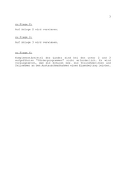 3 zu Frage 2: Auf Anlage 2 wird verwiesen. zu Frage 3: Auf Anlage 3 wird verwiesen. zu Frage 4: Komplementärmittel des Landes sind bei den unter 2 und 3 aufgeführten "Förderprogrammen" nicht erforderlich. Es wird vorausgesetzt, daß die Schulen bzw. die Teilnehmerinnen und Teilnehmer an den Austauschmaßnahmen einen Eigenbeitrag leisten.