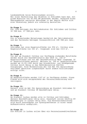 4 Landesbehörde keine Mieteinnahmen erzielt. Bei einer Nachnutzung des Objektes in Schlieben kann max. mit einem Mietzins von 60.000 DM gerechnet werden. Aufgrund eines Überangebotes sanierter Büroräume in der Region dürfte sich eine Vermietung jedoch als schwierig darstellen. Zu Frage 5: Für 1996 betragen die Betriebskosten für Schlieben und Cottbus 30 TDM bzw. 47 TDM pro Jahr. Zu Frage 6: Die zu erwartenden Belastungen bezüglich der Betriebskosten und der Kaltmiete betragen voraussichtlich 188 TDM pro Jahr. Zu Frage 7: Schlieben hat eine Hauptnutzfläche von 954 m², Cottbus eine Hauptnutzfläche von 561 m². Insgesamt sind das 1515 m². Zu Frage 8: Von der am Standort Cottbus zur Verfügung stehenden Nutzfläche werden durch die Geschäftsstelle des LELF ca. 100 m² Hauptnutzfläche und von der Geschäftsstelle MELF insgesamt 30 m² Hauptnutzfläche genutzt. Weitere ca. 300 m² Hauptnutzfläche wurden am 16.09.1996 durch das Grundstücks- und Vermögensamt Cottbus durch Umzug in das Behördenzentrum Süd-Eck freigezogen. Eine Mitbenutzung der vom Amt für Agrarordnung Schlieben genutzten Liegenschaft durch andere Einrichtungen erfolgt nicht. Zu Frage 9: An Hauptnutzfläche werden 1167 m² zu Verfügung stehen. Diese Fläche wird sich entsprechend der Personalreduzierung noch verringern. Zu Frage 10: Derzeit sind im Amt für Agrarordnung am Standort Schlieben 52 und am Standort Cottbus 48 Beschäftigte tätig. Zu Frage 11: Am Standort Luckau werden alle in Cottbus und Schlieben derzeit Beschäftigten tätig sein. Dauerhaft sollen künftig 69 Beschäftigte in Luckau tätig sein. Die Personalreduzierung wird durch Ausschöpfen von Synergieeffekten in einer neuen Aufbaustruktur ermöglicht. Zu Frage 12: Die Stellen in Luckau sollen über ein Personalauswahlverfahren