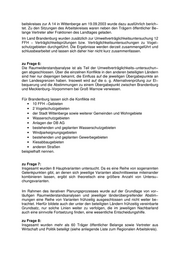 Oberfinanzdirektion Cottbus TLG Treuhand Liegen− BVVG Bodenverwertungs− Bundesvermögensabteilung schafts− und Karl−Liebknecht−Straße 36 gesellschaft mbH −verwaltungs GmbH Niederlassung Berlin/Bran− Niederlassung Brndeburg / 03046 Cottbus denburg Berlin Charlottenstraße 40 Borkumstraße 2 14467 Potsdam 13189 Berlin Liegenschafts− und Bauamt Wehrbereichsverwaltung Ost Staatlicher Munitionsber− Bernau Prötzeler Chaussee 25 gungsdienst Abteilung Liegenschaften des Landes Brandenburg Hans−Witter−Straße 10 15344 Strausberg Hauptallee 116/8 16321 Bernau 15838 Waldstadt / Gem. Wünsdorf Gemeinsame Landespla− Landesumweltamt Bran− Brandenburgisches Lan− nungsabteilung denburg desamt für PF 60 07 52 PF 60 10 61 Denkmalpflege und Archäo− logisches 14411 Potsdam 14410 Potsdam Landesmuseum Wünsdorfer Platz 4−5 15838 Wünsdorf Buna Sow Leuna Landesbetrieb Landesver− Amt für Immissionsschutz Olefinverbund GmbH messung und Geobasisin− Neuruppin Werk Schkopau formation Brandenburg PSF 1116 Dienstort Potsdam 06258 Schkopau Heinrich−Mann−Allee 103 16801Neuruppin 14473 Potsdam Landesamt für Geowissen− Landesbergamt Brandenburg Amt für Flurneuordnung und schaften Postfach 10 09 33 ländliche Entwicklung Neu− und Rohstoffe Brandenburg ruppin Stahnsdorfer Damm 77 03050 Cottbus Fehrbelliner Straße 4c 14532 Kleinmachnow 16816 Neuruppin Landkreis Prignitz Regionale Planungsge− Berliner Straße 49 meinschaft Prignitz−Oberhavel 19348 Perleberg Planungsstelle Fehrbelliner Straße 31 16816 Neuruppin