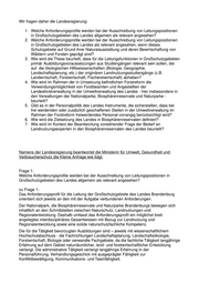 Landtag Brandenburg Drucksache 5/1964 5. Wahlperiode Antwort der Landesregierung auf die Kleine Anfrage 761 der Abgeordneten Gregor Beyer und Andreas Büttner FDP-Fraktion Drucksache 5/1820 Anforderungen an die fachliche Qualifikation zur Leitung der Verwaltung von Großschutzgebieten des Landes Brandenburg Wortlaut der Kleinen Anfrage 761 vom 11.08.2010: Vorbemerkung: Im Rahmen der Neubesetzung der Leitungsstelle für die Verwaltung des Biosphärenreservates Schorfheide-Chorin ist es zu einer Reihe von arbeitsrechtlichen Auseinandersetzungen verschiedener Bewerber mit dem Land Brandenburg gekommen. Zuletzt sind über diesen Umstand eine Reihe von Veröffentlichungen in der Presse erschienen, in denen unter anderem die Frage reflektiert wurde, welche fachliche Qualifikation der/die Leiter/-in erfüllen muss, um als qualifiziert für diese Aufgabe zu gelten. Dabei wurde in einigen Artikeln die These vertreten, dass für diese Qualifikation vorrangig der Nachweis umfassender naturschutzfachlicher bis ökologischer Kenntnisse dringend geboten sei und andere Qualifikationen, vor allem solche aus dem Bereich der Forstwissenschaften, als eher nichtqualifizierend zu gelten hätten. Diese These ist in sofern zumindest erstaunlich, als es sich im Falle des Biosphärenreservats Schorfheide-Chorin nicht nur grundsätzlich um eines der herausragendsten Großschutzgebiete des Landes Brandenburg handelt, sondern nach allgemeiner Expertenmeinung als eines der bedeutendsten Waldgroßschutzgebiete mindestens deutschlandweit. Die Fläche des Gebietes ist mit 48% von Wäldern bestockt von denen lediglich ein geringer Prozentsatz unter Totalschutz (Schutzzone 1) steht und somit vorrangig dem Prozessschutz gewidmet ist. Der weitaus überwiegende Teil der Wälder befindet sich in den Schutzzonen 2 und 3 und wird in verschiedenen Intensitätsstufen forst- und jagdlich bewirtschaftet; in Bezug auf die deutlich überwiegende Schutzzone 3 sogar annähernd ohne jegliche naturschutzfachlichen Einschränkungen, die über die normalen Anforderungen an die gute fachliche Praxis der Waldgesetzgebung hinausgehen. Vielmehr sind Biosphärenreservate weltweite Schutzgebiete, die „als wichtiges Instrument eine nachhaltige, d.h. dauerhaft-umweltgerechte Nutzung der natürlichen Ressourcen modellhaft in einem weltweiten Netzwerk entwickeln, erproben und umzusetzen sollen“. In diesem Kontext kann es allgemein, im Besonderen aber für ein von der Nutzungsform der Wälder und Forste geprägtes Biosphärenreservat keinen Zweifel geben, dass eine forstakademische Ausbildung und Qualifikation Voraussetzung für die Leitungsfunktion in solchen Schutzgebietsverwaltungen sein kann. Datum des Eingangs: 09.09.2010 / Ausgegeben: 14.09.2010