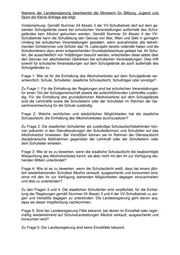 Landtag Brandenburg Drucksache 5/4277 5. Wahlperiode Antwort der Landesregierung auf die Kleine Anfrage 1606 der Abgeordneten Gordon Hoffmann und Ludwig Burkardt CDU-Fraktion Drucksache 5/4106 Verkauf und Konsum von Alkohol auf Schulveranstaltungen Wortlaut der Kleinen Anfrage 1606 vom 30.09.2011: Nach Ziff. 24 Abs. 3 der VV-Schulbetrieb vom 29. Juni 2010 darf „auf dem gesamten Schulgelände … nicht geraucht, kein Alkohol getrunken und keine anderen Suchtmit- tel genommen werden.“ Es ist vielfach zu beobachten, dass sich Schulen, insbeson- dere bei Schulfesten, nicht an diese Vorschrift halten. Es wird Alkohol verkauft, aus- geschenkt und konsumiert sowie geraucht, ohne dass die Voraussetzungen für die Befreiungsregelung in Abs. 4 a.a.O. vorlägen. Wir fragen die Landesregierung: 1. Wer ist für die Einhaltung des Alkoholverbotes auf dem Schulgelände verantwort- lich, Schule, Schulleiter, staatliche Schulaufsicht, Schulträger oder sonstige? 2. Welche rechtlichen und tatsächlichen Möglichkeiten hat die staatliche Schulauf- sicht, die Einhaltung des Alkoholverbotes durchzusetzen? 3. Wie ist es zu bewerten, wenn die staatliche Schulaufsicht die beabsichtigte Miss- achtung des Alkoholverbotes kennt, sie aber nicht mit den ihr zur Verfügung stehen- den Mitteln unterbindet? 4. Wie ist es zu bewerten, wenn die Schulaufsicht weiß, dass bei einem jährlich wie- derkehrenden Schulfest Alkohol verkauft, ausgeschenkt und konsumiert wird, ohne mit den ihr zur Verfügung stehenden Möglichkeiten dagegen einzuschreiten und dies zu unterbinden? 5. Sind der Landesregierung Fälle bekannt, bei denen im Einzelfall oder regelmäßig wiederkehrend auf Schulveranstaltungen Alkohol verkauft, ausgeschenkt und konsu- miert wird? 6. Wie ist ein solcher Vorgang zu beurteilen, wenn eine auf dem Schulgelände statt- findende Schulveranstaltung von einem Förderverein der Schule oder einer ähnli- chen, der Schule verbundenen Einrichtung durchgeführt wird? 7. Wäre der Vorgang anders zu beurteilen, wenn die Schulveranstaltung von einem Förderverein oder einer ähnlichen der Schule verbundenen Einrichtung außerhalb des Schulgeländes durchgeführt würde? Wenn ja, warum? 8. Richtet sich das Verbot des Konsums von Alkohol auch gegen den Schulträger und/oder ist der Schulträger in der Lage, von diesem Verbog Befreiung zu erteilen? 9. Falls Ziff. 24 Abs. 3 VV-Schulbetrieb auch vom Schulträger zu beachten sein soll- te, wer ist dafür zuständig, auf die Beachtung der Vorschrift durch den Schulträger hinzuwirken, wenn dieser darüber irrt oder sich bewusst darüber hinwegsetzt? Datum des Eingangs: 10.11.2011 / Ausgegeben: 16.11.2011