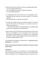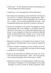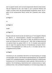 doch nur gewahrt werden, wenn auch die nachgeordneten Bereiche erfasst werden. Dies war fristgerecht für die in den Fragen 8. und 9. genannten Ressorts nicht möglich; es müssen hierfür alle Zahlungseingänge durchgesehen werden. Die An− gaben für den nachgeordneten Bereich werden dem Fragesteller daher nachge− reicht. zu Frage 1.1: Ja zu Frage 1.2: Entfällt zu Frage 1.3: Erlassen wurde die Verordnung über die Gewährung von Trennungsgeld an Beamte auf Widerruf im Vorbereitungsdienst (Anwärter−Trennungsgeldverordnung − AnwTGV vom 27. November 1996 (GVBl. II S. 856)). Der Wortlaut der Verordnung wurde nach Änderung durch Verordnung vom 1. März 2000 mit Bekanntmachung vom gleichen Datum neu gefasst (GVBl. II S. 70). Für Anwärter wurde bestimmt, dass sie wegen ihrer gegenüber Beamten mit Dienstbezügen verringerten Alimen− tation ein Trennungstagegeld nur in Höhe von 75 v. H. der Sätze nach der Tren− nungsgeldverordnung erhalten. zu Frage 2: Veranlassung für die unveränderte Übernahme der Pauschvergütung für sonstige Umzugsauslagen nach § 10 des Bundesumzugskostengesetzes war die gesetzliche Vorgabe (§ 54 Landesbeamtengesetz), Umzugskostenvergütung in entsprechender Anwendung der für die Bundesbeamten jeweils geltenden Rechtsvorschriften zu gewähren. Eine Ermächtigung, Abweichendes durch Landesverordnung zu regeln, enthält § 54 Abs. 2 des Landesbeamtengesetzes nur für Anspruchsgrundlagen und