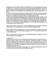 Landtag Brandenburg Drucksache 5/2063 5. Wahlperiode Antwort der Landesregierung auf die Kleine Anfrage 782 des Abgeordneten Dierk Homeyer CDU-Fraktion Drucksache 5/1882 an die Landesregierung Die Arbeiterwohlfahrt in Brandenburg Wortlaut der Kleinen Anfrage 782 vom 25.08.2010: Nach der sogenannten „Maserati-Affäre“, in der der Chef der Treberhilfe in Berlin, einem Verein, der sich um obdachlose Jugendliche kümmert, sich Vorwürfen ausgesetzt sah, er habe sich am Unterneh- men bereichert und seine Mitarbeiter ausgebeutet, hatten einige Bezirksämter beschlossen, keine Auf- träge mehr an die Treberhilfe zu vergeben. Solche Einzelfälle können zu einer Allgemeinverdächtigung aller sozialen Unternehmen und damit auch der Arbeiterwohlfahrt in Brandenburg führen. Um dies zu verhindern, ist es erforderlich, eine größtmögliche Transparenz der AWO herzustellen. Deshalb frage ich die Landesregierung: 1. Wie hoch war die Fördersumme, die die Arbeiterwohlfahrt in Brandenburg vom Land Brandenburg in den Jahren 2009/2010 ausgezahlt bekommen hat? 2. Welche Aufwandsentschädigung (einschließlich mögl. Aufwandspauschalen und sonstiger Vergünstigungen) bekommen die AWO-Landesvorsitzende und die anderen Vorstandsmitglieder im Monat ausgezahlt? 3. Welche Vergütung haben die Geschäftsführung und der Vorstand der sechzehn AWO Kreisverbände im Monat in den Jahren 2009/2010 bekommen? 4. Welche Vergütung haben die Geschäftsführung und der Vorstand des AWO Bezirksverband Brandenburg Ost e.V. in den Jahren 2009/2010 bekommen? 5. Welche Vergütung haben die Geschäftsführung und der Vorstand der AWO Regionalverband Brandenburg Süd e.V. in den Jahren 2009/2010 bekommen? 6. Welche Vergütung haben die Geschäftsführung und der Vorstand der AWO Ortsverband Schwedt e. V. in den Jahren 2009/2010 bekommen? Datum des Eingangs: 27.09.2010 / Ausgegeben: 04.10.2010