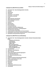 4 Anlage zur Antwort auf die Kleine Anfrage 1717 Leistungen des LLBB 2010 für das Land Berlin Lebensmittel, Wein, Tabak, Bedarfsgegenstände, Kosmetika Futtermittel Hygieneproben Importproben Importproben VO (EG) 669/2009 freiverkäufliche Arzneimittel Umwelt Infektionsdiagnostik Veterinärproben InfektionsdiagnostikHumanproben Humanarzneimittel Gentechnik Abwasserproben Berliner Badestellen Grundwasser-Monitoring Grundwasser-Überwachung Altablagerungen Oberflächenwasser-Monitoring / Grundmessprogramm Fischuntersuchung / Biomonitoring Landesmessstelle für Gefahrstoffrecht und Innenraumhygiene anlassbezogene Untersuchungen (Notwasserversorgung, Innenraumlufthygiene) Systematische Schwerpunktuntersuchungen 2010 Leistungen des LLBB 2010 für das Land Brandenburg Lebensmittel, Wein, Tabak, Bedarfsgegenstände, Kosmetika / Nationaler Rückstandskontrollplan (NRKP) - Planproben und Sonderproben - Verdachtsproben - Hygiene Abklatsch - Hygiene Tupfer - Bakt. Fleischuntersuchung - Planproben NRKP Erzeugerbetrieb - NRKP Verdachtsproben - Planproben NRKP Hemmstoffe Humanarzneimittel veterinärmed. Arzneimittelproben medik. Futtermittel Vollzug Gentechnikgesetz-Überwachungsprogramm amtl. Futtermitteluntersuchung amtl. Pflanzenschutzmitteluntersuchung Düngemittel Düngemittel (außerhalb Düngemittelverkehrskontrolle) Pflanzen- und Ernteproben sowie andere landwirtschaftliche Substrate Bodenproben Tierseuchen Fließgewässer Grundwasserbeschaffenheitsmessnetze Luftschadstoffe