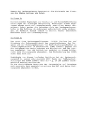 Namens der Landesregierung beantwortet die Ministerin der Finan- - zen die Kleine Anfrage wie folgt: Zu Frage 1: Die bestehenden Regelungen zur Haushalts- und Wirtschaftsführung unterliegen der ständigen Überprüfung. Änderungen dieser Rege- lungen werden durch die Landesregierung jeweils bei Bedarf ver- anlasst. Dabei werden die Jahresberichte des Landesrechnungs- hofes in die Prüfung, ob Änderungen erforderlich sind, einbezo- gen. Im Hinblick darauf bedarf es derzeit keiner besonderen Maßnahmen durch die Landesregierung. Zu Frage 2: Das staatliche Rechnungsprüfungsamt (StRPA) Cottbus hat auf Ortsebene die Ordnungsmäßigkeit der Ausschreibungen, der Ver- gaben und der Rechnungslegungen von Werterhaltungsmaßnahmen an Landesliegenschaften im Landesbauamt (LBA) Cottbus geprüft und die festgestellten Beanstandungen als Prüfbericht dem LBA Cott- bus zugeleitet. Das LBA Cottbus hat zunächst zu diesem Prüfbe- richt eine Stellungnahme abgegeben. Die Rückäußerung des StRPA steht dazu noch aus. Unabhängig von diesem laufenden Verfahren hat der Landesrech- nungshof in seinem Jahresbericht 2000 Teile der Prüfungsfest- stellungen des StRPA Cottbus über die v.g. im LBA Cottbus durch- geführte Prüfung verarbeitet. Da die abschließende Bewertung der Sachverhalte auf Ortsebene noch aussteht, kann gegenwärtig seitens des MdF noch keine Stel- lungnahme abgegeben werden.