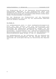 Landtag Brandenburg - 2. Wahlperiode Drucksache 2/1169 Die Einbeziehung der an die Regionalen Entwicklungszentren angrenzenden Gemeinden in die Förderkulisse hätte eine Verdopplung der Anzahl der Förderschwerpunkte zur Folge. Damit würde eine Minimierung der wirtschaftlichen Effekte dieses Bund- Länder-Förderprogrammes einhergehen. Mit der Bündelung von Fördermitteln auf die Regionalen Entwicklungszentren sind auch für die angrenzenden Gemeinden positive Effekte verbunden. Zu Frage 4: Die Landesregierung setzt in ihrer Landesentwicklungspolitik auch auf den Erhalt und die Entwicklung von Wirtschaftsstandorten. Auf der Grundlage des raumordnerischen Leitbildes der dezentralen Konzentration fördert sie die wirtschaftliche Entwicklung der Zentren des raumordnerischen Leitbildes, einschließlich der industriell-gewerblichen Entwicklungsstandorte. Ausdruck hierfür ist die Beimessung von Höchstfördersätzen gemäß Anlage III des 24. Rahmenplanes. Die Landesregierung ist der Auffassung, daß die Stärkung der Regionalen Entwicklungszentren und der übrigen Zentren des Leitbildes der wichtigste Beitrag zur Entwicklung der Regionen ist. 4