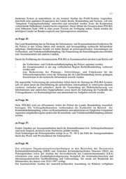 23 modernen System zu unterstützen, ist ein weiterer Ausbau des PASS-Systems vorgesehen. Innerhalb einer geplanten Kooperation der Länder Berlin, Brandenburg und Sachsen soll eine “Integrierte Vorgangsbearbeitung” entworfen und entwickelt werden. Erste, die Kooperation vorbereitende Maßnahmen wurden bereits eingeleitet. Dieses Modul des Gesamtsystems POLIKS wird frühestens Ende 1998 in einer ersten Version zur Verfügung stehen. Damit würden die beteiligten Länder im Bundesvergleich eine Spitzenposition einnehmen. zu Frage 35: Das Land Brandenburg hat zur Deckung der Informations- und Kommunikationserfordernisse für die Polizei in den letzten Jahren eine moderne und leistungsfähige technische Infrastruktur aufgebaut. Darüberhinaus besteht ein hoher Bedarf an polizeispezifischen Anwendungen zur Verbrechens- und Verkehrsunfallbekämpfung. Die Finanzierung der Entwicklungskosten erfordert eine Zusammenarbeit mit anderen Ländern. Durch die Einführung des Gesamtsystems POLIKS in Zusammenarbeit mit dem Land Berlin soll - die Verbrechens- und Verkehrsunfallbekämpfung der Polizei optimiert werden, - die Zusammenarbeit in der eng verflochtenen Region Berlin/Brandenburg verbessert werden und - eine Reduzierung der Planungs-, Entwicklungs- und Folgekosten für die Softwarekomponenten sowie die Sicherung der im Land Brandenburg bereits getätigten Investitionen in die technische Infrastruktur erreicht werden. Die angestrebte Verbesserung der polizeilichen Arbeit durch die Nutzung des POLIKS-Systems soll vor allem durch die Durchführung der polizeilichen Arbeitsabläufe in verbesserter Qualität (sicherer, einfacher und schneller), durch die Vermeidung der Mehrfacherfassung von Informationen und zahlreichen Doppelarbeiten sowie durch die Entlastung der Fachkräfte des Vollzugsdienstes von Routinetätigkeiten und administrativen Aufgaben erreicht werden. zu Frage 36: Nein. POLIKS wird zur effizienteren Arbeit der Polizei des Landes Brandenburg wesentlich beitragen. Die Vollzugsbediensteten, insbesondere die Fachkräfte im Bereich der Kriminalitätsbekämpfung, sollen von Routinearbeiten und administrativen Tätigkeiten weitgehend zugunsten aufgabenbezogener praktischer Kriminalitäts- und Verkehrsunfallbekämpfung entlastet werden. zu Frage 37: Exakte Angaben zur Anzeigenaufnahme durch die Kriminalbeamten bzw. Schutzpolizeibeamten sind nicht möglich, da hierzu keine Nachweise geführt werden. Nach Schätzungen der Polizeipräsidien erfolgt in ca. 70 - 80 % der Fälle die Anzeigenaufnahme durch den Wach- und Wechseldienst der Schutzpolizei. zu Frage 38: Die erfolgten Organisationsfortschreibungen in den Bereichen der Dezentralen Kriminalitätsbekämpfung (DKB) und Zentralen Kriminalpolizeilichen Diensten (ZKD) der Polizeipräsidien sowie der Ausbau der Servicebereiche des Landeskriminalamtes (LKA) erforderten eine neue Zuständigkeitsabgrenzung bezüglich der kriminaltechnischen und erkennungsdienstlichen Sachbearbeitung und Untersuchung. Sie wurde mit Runderlaß des Ministeriums des Innern vom 20.03.1997 verfügt. Der kontinuierliche Ausbau der materiell-technischen Ausstattung im Rahmen verfügbarer