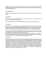24 Haushaltsmittel - bei gleichzeitiger Qualifizierung des Personals - und die Durchführung gezielter Maßnahmen der Qualitätssicherung trägt den ständig steigenden Anforderungen an die objektive Beweisführung Rechnung. zu Frage 39 bis 42: Weder über Tatorteinsätze noch zur Anzahl der dabei gesicherten Spuren wird eine Statistik geführt. zu Frage 43: 1996 wurden im Land Brandenburg 14.841 Spurenvorgänge zur kriminaltechnischen Untersuchung und Auswertung eingereicht. Ein Spurenvorgang kann mehrere Spuren beinhalten. Eine Einzelregistrierung erfolgt nicht. zu Frage 44: Den Beweiswert einer Spur würdigen ausschließlich die Gerichte. Deshalb kann die Polizei im Rahmen ihrer Tätigkeit lediglich den Spurenverursacher ermitteln bzw. identifizieren. Dieses Ergebnis (belastend bzw. entlastend) geht in die Ermittlungsakte ein. Auf die Bedeutung objektiver Beweise (Spuren) zur Entlastung potentieller Tatverdächtiger wird ausdrücklich hingewiesen. Da von einem Täter erst nach rechtskräftiger Verurteilung gesprochen werden kann und keine Verknüpfungen zwischen der Verurteilungsstatistik der Justiz und den Statistiken bzw. Dateien der Polizei bestehen, kann die Frage nicht beantwortet werden. Die Tendenz zeigt jedoch, daß durch das enorm gestiegene Aufkommen an gesicherten auswertbaren Spuren und Vergleichsmaterialien mittels objektiver Beweise (Spuren) ein steigender Beitrag zur Belastung bzw. Entlastung Tatverdächtiger geleistet wurde. zu Frage 45: Die durchschnittlichen Bearbeitungszeiten in den Polizeipräsidien und im Landeskriminalamt in den einzelnen Untersuchungseinrichtungen der Kriminaltechnik variieren stark. Die nachfolgende Tabelle gibt Auskunft über die Vorgangsdurchlaufzeiten, aufgeschlüsselt nach Prozentanteilen und Bearbeitungszeit der im LKA im Berichtszeitraum abgeschlossenen Vorgänge. Die Tabelle verdeutlicht, daß aufgrund besonderer Komplexität der Untersuchungsanforderungen in zahlreichen Fällen die Bearbeitungszeiten mehrere Monate dauerten und der Bestand an unbearbeiteten Vorgängen, trotz angeordneter Mehrarbeit, Optimierung abteilungsinterner Arbeitsabläufe und Absprachen mit den Auftraggebern in einigen Expertiserichtungen weiter anstieg. Die Auswertung daktyloskopischer Spuren im Automatisierten Fingerabdruck Identifizierungsverfahren (AFIS) beträgt 7 bis 14 Tage.