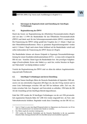- 11 - (BMVBS 2008) (Vgl. hierzu auch Ausführungen in Kapitel 4.1.) 4. Kürzungen im Regionalverkehr und Einstellung der InterRegio- Verbindungen 4.1. Regionalisierung des ÖPNV Durch das Gesetz zur Regionalisierung des öffentlichen Personennahverkehrs (RegG) sind seit dem 1.1.1994 die Bundesländer für den Öffentlichen Personennahverkehr (ÖPNV) und damit auch für den Schienenpersonennahverkehr (SPNV) verantwortlich. Die Finanzierung des ÖPNV erfolgt gemäß den Vorgaben des § 5 Absatz 1 RegG aus dem Mineralölsteueraufkommen. Diese so genannten Regionalisierungsmittel werden nach § 5 Absatz 3 RegG nach einem festen Schlüssel auf die Bundesländer verteilt und sollen insbesondere der Finanzierung des SPNV dienen (§ 6 RegG). Die Bundesländer können seit diesem Zeitpunkt in Eigenregie Personenbeförderungs- leistung bei einem Eisenbahnverkehrsunternehmen (EVU) – es muss nicht zwingend die DB AG sein – bestellen. Damit legen die Bundesländer bzw. ihre jeweiligen Aufgaben- träger (Zweckverbände, Kreise oder Städte) u.a. auch fest, welche Strecken im Regio- 5 6 nal-/Nahverkehr wie häufig befahren werden. Vorteile der Regionalisierung des ÖPNV sind vor allem die stärkere Angebotsorientie- rung und mehr Wettbewerb. 4.2. InterRegio-Verbindungen und deren Einstellung Unter dem Namen InterRegio führte die Deutsche Bundesbahn ab September 1988 suk- zessive ein neu entwickeltes Zugsystem (IR-Züge) ein, das den D-Zug ersetzen und in erster Linie Entfernungen zwischen 100 und 500 km bedienen sollte. Ziel war, die Lücke zwischen Nah- bzw. Regional- und Fernverkehr zu schließen. 1994 hatte die DB AG die Umstellung auf den InterRegio-Betrieb abgeschlossen. Ende Mai 1999 wurden die 30 InterRegio-Verbindungen von der seit 1994 privatrecht- 7 lich organisierten Deutsche Bahn AG (DB AG) wieder eingestellt bzw. als Fern- oder Nahverkehrsstrecke befahren. Begründet wurde diese Umstellung von der DB AG u.a. 5 Nach § 2 RegG ist unter dem Begriff Regionalverkehr im Allgemeinen eine Reiseweite von 50 km oder eine Gesamtreisezeit von maximal einer Stunde zu verstehen. 6 Das Nähere regeln die einzelnen Ländergesetze. 7 1994 wurden die Deutsche Reichsbahn und die Deutsche Bundesbahn in die neu gegründete Deutsche Bahn Aktiengesellschaft (DB AG) überführt und privatwirtschaftlich organisiert.