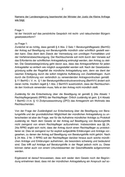 3 fortige Sachentscheidung des zuständigen Rechtspflegers über die Bewilligung ein- hergeht. Im Ergebnis ist festzuhalten, dass die Möglichkeit eröffnet sein muss, Beratungshil- feanträge auch mündlich zu stellen, jedoch nicht zugleich die mündliche Antragstel- lung vor dem Rechtspfleger erfolgen muss. Frage 2: Wird diese Verfahrensweise auch an anderen Amtsgerichten im Land Brandenburg praktiziert? zu Frage 2: Sowohl bei dem Amtsgericht Fürstenwalde als auch bei sämtlichen anderen Amtsge- richten im Land Brandenburg können Anträge auf Beratungshilfe entsprechend § 4 Abs. 2 Satz 1 BerHG mündlich oder schriftlich gestellt werden. Bei dem Amtsgericht Fürstenwalde ist die dort bisher bestehende Praxis, nach der die mündlich gestellten Anträge in der Regel auch von einem Rechtspfleger aufge - nommen wurden, in diesem Jahr dahingehend geändert worden, dass die Antragstel- ler gebeten werden, ihren Antrag auf dem mit § 1 BerHVV eingeführten Formular zu stellen. Antragsteller, die dazu nicht in der Lage sind, können den Antrag jedoch wei- terhin auch mündlich zu Protokoll geben. Dies ist auch in letzter Zeit mehrfach ge- schehen. Die geänderte Praxis dient dazu, angesichts der Personalknappheit insbe- sondere im Rechtspflegerbereich die Rechtspfleger und die Urkundsbeamten der Geschäftsstelle von der zeitaufwändigen Aufnahme mündlicher Anträge zu entlasten, soweit dies möglich ist. Dadurch wird die den Rechtspflegern obliegende Entschei- dung über die Anträge auf Beratungshilfe beschleunigt, weil sie bei dieser Tätigkeit nicht mehr durch die Aufnahme mündlicher Anträge unterbrochen werden. Bei den übrigen Amtsgerichten ist das Verfahren zur Aufnahme von Anträgen auf Be- ratungshilfe unterschiedlich gestaltet. Bei der Mehrzahl der Amtsgerichte werden mündliche Anträge von dem Urkundsbeamten der Geschäftsstelle zu Protokoll ge- nommen, der bei Bedarf auch den direkten Kontakt zu dem für die Bewilligung der Beratungshilfe zuständigen Rechtspfleger vermittelt. In anderen Amtsgerichten wer- den auch mündliche Anträge so wie zuvor bei dem Amtsgericht Fürstenwalde unmit- telbar von dem für die Bewilligung von Beratungshilfe zuständigen Rechtspfleger auf- genommen. Jede dieser Verfahrensweisen ist rechtlich unbedenklich. Soweit der Internetauftritt einzelner Amtsgerichte im Hinblick auf die Möglichkeit ei- ner mündlichen Antragstellung missverständliche Hinweise zur Beantragung von Be- ratungshilfe enthält, wird eine entsprechende Klarstellung veranlasst werden.