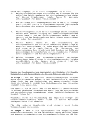 Landtag Brandenburg Drucksache 2/4226 2. Wahlperiode Antwort der Landesregierung auf die Kleine Anfrage Nr. 1320 des Abgeordneten Rainer Neumann Fraktion der CDU, Drucksache 2/4011 Konzept zur Rekonstruktion der Elbedeiche Wortlaut der Kleinen Anfrage Nr. 1320 In einem vom Landesumweltamt in Auftrag gegebenen "Konzept zur Variantendiskussion im Rahmen der Umweltverträglichkeitsstudie Rekonstruktion Rechter Elbedeich von Fährstraße Wootz bis Hafen Wittenberge" vom 15.05.1995, sind verschiedene Deichlinienvarianten bis hin zu Deichrückverlegungen, untergliedert in die Teilabschnitte A (Kietz-Mödlich), B (Mödlich-Böser Ort), C (Böser Ort-Cumlosen), D (Cumlosen- Müggendorf) und E (Müggendorf-Wittenberge), dargestellt. In der Antwort auf die Kleine Anfrage Nr. 312 vom 21.06.1995, also vor etwa zwei Jahren, erklärte die Landesregierung, daß die e n d g ü l t i g e L i n i enführung der Deichverleg u n g e n ü b e r Modellversuche ermittelt werden soll. Ich frage die Landesregierung: 1. Für welche der o. g. Teilabschnitte wurden oder werden derzeit Modellversuche bzw. Gutachten für Deichverlegungen durchgeführt bzw. erstellt ? 2. Welche Kosten werden dadurch insgesamt verursacht ? 3. Wie werden diese finanziert ? 4. Welche Einrichtungen wurden mit den Untersuchungen (siehe Frage 1) beauftragt, untergliedert nach Name und Anschrift der Einrichtung, untersuchter bzw. zu untersuchender Teilabschnitt und Benennung des Gutachterauftrages (z. B. Anfertigung eines hydraulischen Gutachtens, eines geologischen Gutachtens, eines Gutachtens zu den Auswirkungen auf den Hochwasserschutz usw.) ? 5. Welche Ergebnisse liegen bisher vor bzw. welche tendenziellen Aussagen zu Deichverlegungen können nach dem derzeitigen Stand der Untersuchungen getroffen werden, untergliedert nach Gutachten für jeden einzelnen Teilabschnitt ?