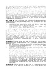 Die Finanzierung erfolgt zu rd. 50 % aus Mitteln des EU-Life- Projektes "Renaturierung Brandenburgische Elbtalaue" und zu 50 % durch die Landesanstalt für Großschutzgebiete (LAGS). Die Untersuchung zur Dränge- und Grundwasserproblematik für die mögliche Deichrückverlegung wird im Rahmen des vom BMBF zu 100 % finanzierten 3,5 Mio.DM umfassenden Elbe-Ökologie-Projektes "Renaturierungspotentiale mitteleuropäische Flußauenlandschaften - Möglichkeiten und Grenzen der Auenregeneration- und Auenwaldentwicklung" am Beispiel von Naturschutzprojekten an der unteren Mittelelbe (Brandenburg) durchgeführt. zu Frage 4: Das Gutachten der hydraulisch-morphologischen Untersuchung von Rückdeichungen an der Elbe bei Lenzen, mit den Schwerpunkten - Veränderung von Wasserspiegellagen und Gefälle sowie des zeitlichen Ablaufs von Hochwasserwellen, - Veränderungen von Strömungsrichtung und -größe mit Auswirkungen auf den Feststofftransport, wurde in der Bundesanstalt für Wasserbau Karlsruhe, Außenstelle Berlin, Alt Stralau 44, 10245 Berlin bearbeitet. Die Auswirkungen auf die Dränge- und Grundwasserentwicklung hinter dem neuen Deich werden im Rahmen der "Untersuchungen der Auswirkungen wasserbaulicher Eingriffe auf die Grundwasserdynamik in Flußauen" innerhalb des vorgenannten Elbe- Ökologie-Forschungsvorhabens des BMBF an der technischen Hochschule Darmstadt, Rundturmstraße 1, 64283 Darmstadt untersucht. zu Frage 5: Bisher liegt nur das Gutachten der hydraulisch- morphologischen Untersuchungen mit folgenden wesentlichen Aussagen vor: - Die Rückdeichung führt bei Hochwasser zu einer kurzzeitigen Wasserspiegelabsenkung innerhalb des Rückdeichungsabschnittes. - Im Umfeld der Rückdeichung verändern sich langfristig die Feststofftransportverhältnisse. Diese Veränderungen sind aus der Sicht des Wasserhaushaltes und des Naturschutzes positiv einzuschätzen, da sie der bestehenden leichten Erosionstendenz entgegenwirken. Lokal müssen sie in einigen Bereichen aber als problematisch hinsichtlich der Gewährleistung der Leichtigkeit des Schiffsverkehrs eingeschätzt werden. - Das Speichervolumen des durch mögliche Deichrückverlegung vergrößerten Vorlandes ist gering und kann nur im Zusammenhang mit weiteren Deichrückverlegungen und Hochwasserrückhaltemaßnahmen entlang der Elbe zu einer großräumigen Verbesserung der Hochwassersituation beitragen. zu Frage 6: Da die Deiche an der Elbe im Landkreis Prignitz überwiegend nicht mehr den allgemein anerkannten Regeln der