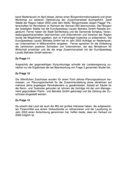 Landtag Brandenburg Drucksache 3/6884 3. Wahlperiode Antwort der Landesregierung auf die Kleine Anfrage Nr. 2537 der Abgeordneten Dr. Esther Schröder fraktionslos Drucksache 3/6637 Weitere Steuergelder für den Lausitzring Wortlaut der Kleinen Anfrage Nr. 2537 vom 17.11.2003: Bis zum Jahr 2008 will das Land Brandenburg weitere 5,8 Millionen Euro Landes− mittel für den insolventen Lausitzring bereitstellen − dies erklärte der Wirtschafts− minister auf meine mündliche Anfrage "Neue Finanzhilfen für den Lausitzring". Das Land leistet sich damit den teuren Luxus öffentlich geförderter Autorennen, während die hierbei verbrauchten finanziellen Mittel in anderen Bereichen − wie z. B. Wis− senschaft, Forschung, Bildung oder Arbeit, Gesundheit, Soziales und Frauen − fehlen. Die neuen Finanzhilfen für den Lausitzring stoßen zudem aus Wirtschafts− kreisen auf heftige Kritik. Nach Presseberichten haben sich rund 1 000 Unter− zeichner, darunter 100 Firmenchefs, an Wirtschaftsminister Junghanns gewandt und es als "unverantwortlich" bezeichnet, der derzeitigen Geschäftsführung neue Steuergelder zur Verfügung zu stellen. Deren "Unfähigkeit" sei "ursächlich für die nicht enden wollenden wirtschaftlichen Probleme" des Eurospeedway Lausitz. Mit dieser Geschäftsführung drohe ein zweites "CargoLifter". Gutes Geld würde vom Wirtschaftsminister einem schlechten Management hinterher geworfen. Kritisiert werden zudem inzwischen sowohl von der regionalen Wirtschaft als auch vom Management selbst, dass die Erwartungshaltung an den Lausitzring von Anfang an politisch "zu hoch geschraubt" worden sei. Dies gelte insbesondere für die seiner− zeit versprochenen 1 500 Arbeitsplätze, einer Prognose, die heute als von vornhe− rein falsch bezeichnet wird. Ich frage daher die Landesregierung: 1. In welcher Höhe flossen von 1999 bis 2003 öffentliche Fördergelder (EU−, Bun− des−, Landes− und kommunale Mittel) in Planung, Errichtung und Betrieb des Eurospeedway Lausitz? Datum des Eingangs: 16.12.2003 / Ausgegeben: 22.12.2003
