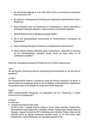 Landtag Brandenburg Drucksache 5/2833 5. Wahlperiode Antwort der Landesregierung auf die Kleine Anfrage 1045 des Abgeordneten Danny Eichelbaum Fraktion der CDU Drucksache 5/2702 Bekämpfung des Linksextremismus in Brandenburg Wortlaut der Kleinen Anfrage 1045 vom 20.01.2011: Linksextremisten verfolgen trotz unterschiedlicher ideologischer und theoretischer Positionen das Ziel, die bestehende Staats- und Gesellschaftsordnung der Bundesrepublik Deutschland zu beseitigen. Während terroristische und militant-autonome autonome Bestrebungen offen die Zerschlagung unseres demokratischen Rechtsstaates anstreben, propagieren andere Gruppen den Klassenkampf nach marxistisch-leninistischem Vorbild. Linksextremistische Gewalt richtet sich immer wieder gegen Polizeibeamte. Vermehrt rufen linksextremistische Musikbands in Brandenburg zu Gewalt auf. Der Verfassungsschutz hat den gesetzlichen Auftrag, zum Schutz der freiheitlichen demokratischen Grundordnung, Informationen über linksextremistische Bestrebungen zu sammeln, auszuwerten und darüber die Behörden und die Öffentlichkeit zu unterrichten. Die Bekämpfung linksextremistischer Straftaten ist eine zentrale staatliche Aufgabe. Ich frage die Landesregierung: 1. Wie viele Personen in Brandenburg ordnet die Landesregierung als linksextremistisch ein, wie viele davon als gewaltbereit? 2. Welche linksextremistischen Vereinigungen und Organisationen gibt es in Brandenburg, in welchen Kommunen sind sie vorwiegend aktiv? 3. Wie viele linksextremistische Gewaltstraftaten wurden in Brandenburg in den Jahren 2009 und 2010 verübt, bitte auflisten nach Straftaten? Datum des Eingangs: 16.02.2011 / Ausgegeben: 21.02.2011