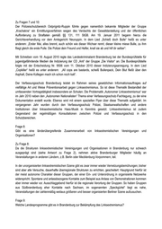 Frage 5: Wie beurteilt die Landesregierung die Entwicklung der unorganisierten linksextremistischen Szene in Brandenburg? Zu Frage 5: Die unorganisierte linksextremistische Szene in Brandenburg, der seit Jahren konstant 300 Personen zuzurechnen sind, unterliegt einem deutlichen inhaltlichen Wandel. Wurde sie in der Vergangenheit vom herkömmlichen Typ des Autonomen dominiert, entwickeln sich heute diverse Clubs und Vereine zu Kristallisationspunkten. Hier finden linksextremistische Einzelpersonen Anlauf- und Vernetzungsstellen, um mit ihren Ansichten auch außerhalb der spontanen Gewaltanwendung aktiv zu werden. Linksextremisten sind weiterhin bemüht, über den Kampf gegen den Rechtsextremismus und vor allem über die Jugendarbeit vermehrt Anschluss an die demokratische Zivilgesellschaft und deren Fördermittel zu finden. Der Charakter linksextremistischer Gewalt hat sich verändert. Während sich klassische Organisationsstrukturen auflösen, steigt das Maß an erlebnisorientierter, gelegentlicher und ideologisch kaum unterfütterter Mobilisierung. Die fehlenden theoretischen Grundlagen werden durch eine Gewaltbereitschaft ersetzt, die sich gegen den angeblichen Repressionsapparat und den politischen Gegner spontan oder in geplanten Einzelaktionen entlädt. Besonders im Zusammenhang mit der Ausbildung einer linksextremistischen Musikszene scheint sich eine Subkultur zu bilden, die von Entideologisierung, undefinierten Hassgefühlen und Gewaltgeneigtheit geprägt ist. Das linksextremistische Personenpotenzial wird dadurch zunehmend unberechenbarer und gewaltgeneigter. Frage 6: Welche Musikbands haben nach Erkenntnissen der Landesregierung zu Gewalt, insbesondere zu Gewalt gegen Polizeibeamte aufgerufen, in welchen Kommunen sind die Bands aufgetreten? Zu Frage 6: Nach Erkenntnissen des Verfassungsschutzes sind hier zu nennen: Die Visitor Brandenburg an der Havel) Klartext (Eberswalde) Krachakne Todschick Gekleidet (TSG) (Guben) Zusammenrottung (Hennigsdorf) Wicked World (Potsdam) Die Gruppen wollten in Fürstenwalde, Strausberg, Eberswalde, Neuruppin, Luckenwalde, Guben, Potsdam und Lauchhammer auftreten bzw. sind dort aufgetreten. Frage 7: Welche Maßnahmen hat die Landesregierung hiergegen ergriffen? Frage 10: Welche konkreten präventiven Maßnahmen gegen Linksextremismus, insbesondere für Kommunen und ihre Entscheidungsträger, Jugendliche, Schulen, Vereine und Bürger werden von der Landesregierung angeboten?