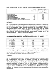 Ältere Menschen über 60 Jahre waren wie folgt von Gewaltstraftaten betroffen: Anzahl Anteil älterer Opfer an älterer Opfer den jeweiligen Gewalt− straftaten insgesamt (in %) Opfer eines Mordes 3 12,0 Opfer eines Totschlages 13 16,7 Opfer eines Raubes 264 15,1 Opfer einer Vergewaltigung 2 0,9 Opfer einer Körperverletzung mit Todesfolge 2 40,0 Opfer einer gefährlichen und schweren Körperverletzung 130 3,2 zu Frage 8: Die durchschnittlichen Zahlbeträge der Versichertenrenten haben sich in den neuen Bundesländern in dem fraglichen Zeitraum zum jeweiligen Rentenanpassungstermin wie aus nachstehender Tabelle ersichtlich entwickelt. Die zum Stichtag 1. Juli 2004 verminderten Beträge sind in erster Linie darauf zurückzuführen, dass der Beitrag zur Pflegeversicherung seit dem 1. April 2004 in voller Höhe (1,7 % der Rente statt bisher 0,85 %) durch die Rentnerinnen und Rentner selbst zu tragen ist und die Rentenbeträge zum 1. Juli 2004 nicht erhöht wurden. Durchschnittliche Rentenzahlbeträge der Versichertenrenten* in den neuen Bundesländern am jeweiligen Anpassungstermin (in Euro pro Monat): Stichtag Männer Frauen Insgesamt 01.07.2000 982 614 759 01.07.2001 1.000 629 777 01.07.2002 1.025 650 800 01.07.2003 1.037 663 811 01.07.2004 1.018 659 805 * Erfasst sind Renten wegen Alters und verminderter Erwerbsfähigkeit ohne Knappschaftsaus− gleichsleistungen, ohne reine Leistungen nach dem Kindererziehungsleistungsgesetz und ohne Null− renten, einschließlich der Renten nach Artikel 2 Rentenüberleitungsgesetz. Die Zahlbeträge ergeben sich nach Abzug der Beiträge zur Kranken− und Pflegeversicherung der Rentner. Quelle: Statistikdaten des Verbands Deutscher Rentenversicherer zu Frage 9: Für die Kaufkraft, Kaufkraftleistung oder den Kaufkraftverlust von Rentnern liegen der Landesregierung keine Daten vor. Insofern kann über die durchschnittliche Höhe des Kaufkraftverlustes keine Aussage getroffen werden. Dass ein tatsächli− cher Kaufkraftverlust eingetreten ist, lässt sich aus Merkmalen wie z. B. Rentenan− passung (Nullrunden in 2004 und 2005 in Folge geringer Entwicklung der Er− werbseinkommen), Preisindex, Zahlung des vollen Beitrags für die Pflegeversiche− rung und Kosten für Mehraufwendungen durch die neuen Zuzahlungsregelungen aufgrund der Gesundheitsreformgesetzgebung (Gesundheitsmodernisierungsge− setz) ableiten.
