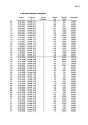 Seite: 5 5. MOSAIK-Shuttle-Transporte Datum Transport- Anzahl Masse Aktivität Transportart Nr. Container [kg] [GBq] 168 30.01.2007 Shuttle 01/07 1 501 330 Straße 169 06.02.2007 Shuttle 02/07 1 523 340 Straße 170 13.02.2007 Shuttle 03/07 1 395 270 Straße 171 20.02.2007 Shuttle 04/07 1 514 320 Straße 172 08.05.2007 Shuttle 05/07 1 641 13100 Straße 173 15.05.2007 Shuttle 06/07 1 637 13000 Straße 174 30.05.2007 Shuttle 07/07 1 637 13000 Straße 175 05.06.2007 Shuttle 08/07 1 622 12700 Straße 176 12.06.2007 Shuttle 09/07 1 713 14600 Straße 177 17.07.2007 Shuttle 10/07 1 535 11300 Straße 178 24.07.2007 Shuttle 11/07 1 630 12800 Straße 179 31.07.2007 Shuttle 12/07 1 618 12600 Straße 180 07.08.2007 Shuttle 13/07 1 615 12500 Straße 181 14.08.2007 Shuttle 14/07 1 647 13200 Straße 182 21.08.2007 Shuttle 15/07 1 730 14800 Straße 183 28.08.2007 Shuttle 16/07 1 669 13700 Straße 184 04.09.2007 Shuttle 17/07 1 618 13100 Straße 185 11.09.2007 Shuttle 18/07 1 642 13300 Straße 186 06.12.2007 Shuttle 19/07 1 533 11300 Straße 187 13.12.2007 Shuttle 20/07 1 568 32900 Straße 188 08.01.2008 Shuttle 01/08 1 658 62000 Straße 189 15.01.2008 Shuttle 02/08 1 649 60000 Straße 190 22.01.2008 Shuttle 03/08 1 547 53000 Straße 191 29.01.2008 Shuttle 04/08 1 483 6710 Straße 192 05.02.2008 Shuttle 05/08 1 572 55000 Straße 193 19.02.2008 Shuttle 06/08 1 36 45 Straße 194 26.02.2008 Shuttle 07/08 1 65 1370 Straße 195 04.03.2008 Shuttle 08/08 1 60 688 Straße 196 17.04.2008 Shuttle 09/08 1 51 46 Straße 197 24.04.2008 Shuttle 10/08 1 82 1370 Straße 198 29.04.2008 Shuttle 11/08 1 29 188 Straße 199 06.05.2008 Shuttle 12/08 1 670 4500 Straße 200 14.05.2008 Shuttle 13/08 1 714 4900 Straße 201 20.05.2008 Shuttle 14/08 1 674 4500 Straße 202 27.05.2008 Shuttle 15/08 1 730 5000 Straße 203 03.06.2008 Shuttle 16/08 1 693 4700 Straße 204 10.06.2008 Shuttle 17/08 1 618 4200 Straße 205 17.06.2008 Shuttle 18/08 1 452 6370 Straße 206 01.07.2008 Shuttle 19/08 1 444 3030 Straße 207 08.07.2008 Shuttle 20/08 1 11 1060 Straße 208 15.07.2008 Shuttle 21/08 1 678 4600 Straße 209 22.07.2008 Shuttle 22/08 1 626 30300 Straße 210 29.07.2008 Shuttle 23/08 1 597 52300 Straße 211 05.08.2008 Shuttle 24/08 1 604 27600 Straße 212 12.08.2008 Shuttle 25/08 1 655 31100 Straße 213 19.08.2008 Shuttle 26/08 1 570 27000 Straße 214 26.08.2008 Shuttle 27/08 1 676 1490 Straße 215 02.09.2008 Shuttle 28/08 1 655 748 Straße 216 09.09.2008 Shuttle 29/08 1 598 57700 Straße 217 16.09.2008 Shuttle 30/08 1 471 45400 Straße