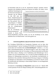 -6- In Deutschland wurde das in der der „thematischen Strategie“ geforderte Aktions- Programm nach dreijähriger Beratung mit Experten des Bundes, der Länder, wissen- schaftlicher Einrichtungen und den Interessenvertretungen der Anwender und der Industrie im Jahr 2005 unter dem Namen „Reduktionsprogramm chemischer Pflanzenschutz auf den Weg gebracht. Eine der vorgeschlagenen 19 Maßnah- men besteht aus der Einfüh- rung der „schlagbezogenen Dokumentation“. Mit der Novellierung des aus: „Reduktionsprogramm chemischer Pflanzenschutz“ BMELV, 2005 Pflanzenschutzgesetzes soll www.bba.de/mitteil/aktuelles/forumpfs/redprgchempfs.pdf nunmehr in diesem Punkt Rechtsverbindlichkeit hergestellt werden, die mit der Erwähnung in der „Guten fachlichen Praxis im Pflanzenschutz“ noch nicht gegeben war. 3. Aufzeichnungspflichten aufgrund bestehender Fachvorschriften Die Verordnung EG/852/2004 des Europäischen Parlaments und des Rates über 10 Lebensmittelhygiene und die Verordnung EG/183/2005 des Europäischen Parlaments 11 und des Rates mit Vorschriften über die Futtermittelhygiene schreiben u. a. vor, dass neben Lebensmittelunternehmen, die Pflanzenerzeugnisse ernten oder erzeugen auch Futtermittelunternehmen über die Verwendung von Pflanzenschutzmitteln und Bioziden Buch führen müssen. Allerdings ist die Verpflichtung nicht flächenbezogen. Sie be- schränkt sich auf die Betriebseinheit, da es im Sinne der Rückverfolgbarkeit und zur Klärung evtl. Haftungsfragen ausreichend ist, die betreffenden Anwenderbetriebe zu identifizieren. Eine zusätzliche, flächenspezifische Erfassung ist dagegen in Verbindung mit Belangen des Naturschutzes und der Reinhaltung von Gewässern sinnvoll, da hier die Nachbarschaft oder Entfernung zu schutzwürdigen Objekten von ausschlaggebender Bedeutung sein kann. Im Fachrecht zur Anwendung von Düngemitteln wurden mit der am 1. Oktober 2006 in Kraft getretenen Novelle der Düngeverordnung (DüV) Aufzeichnungspflichten fest- 10 ABl. L 139/1, 29.04.2004 11 ABl. L 35/5, 08.02.2005